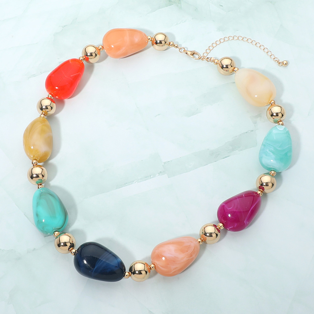 Chunky Resin Marbled Pebble Beaded Necklace Chunky Resin Marbled Pebble Beaded Necklace Chunky Resin Marbled Pebble Beaded Necklace