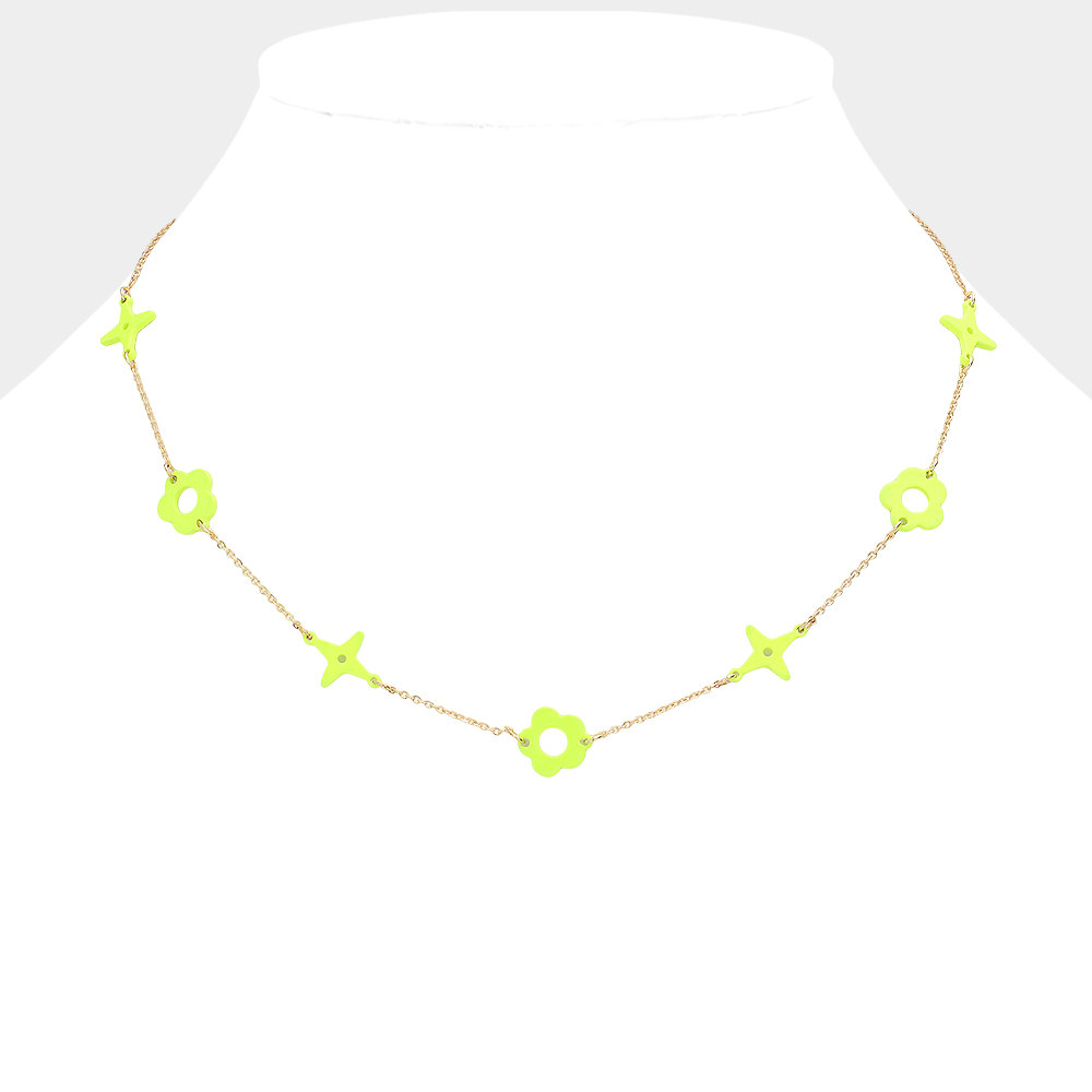 Enamel Point Metal Flower Open Teardrop Dangle Earrings