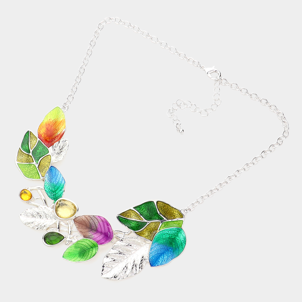 Colored Metal Leaf Cluster Necklace