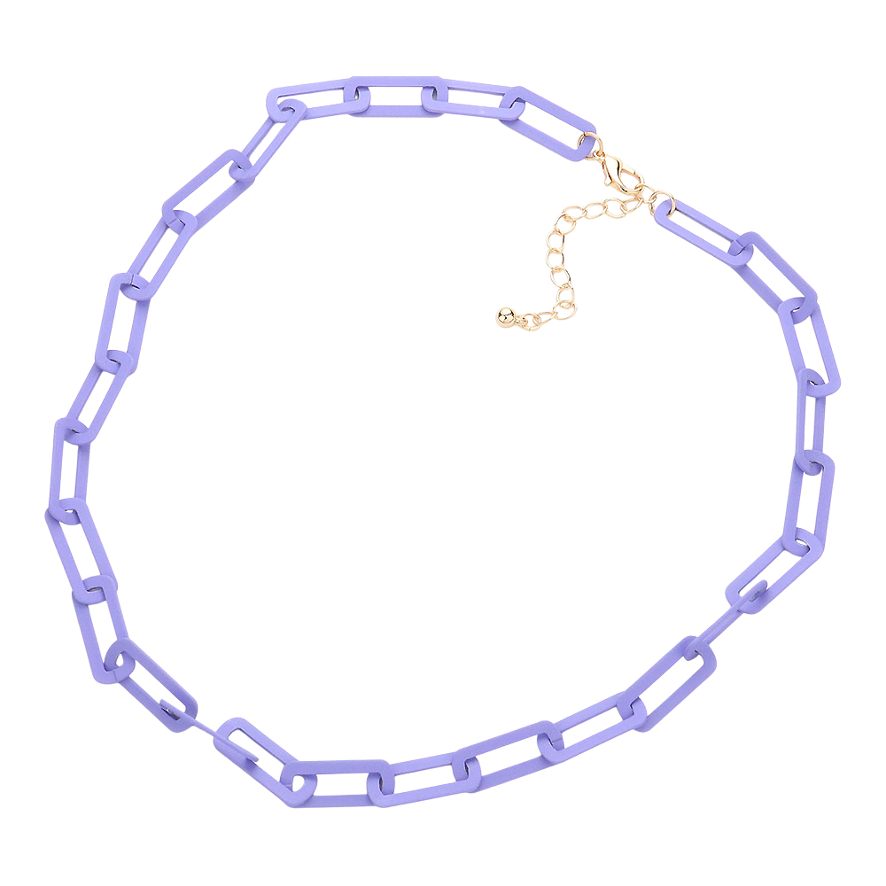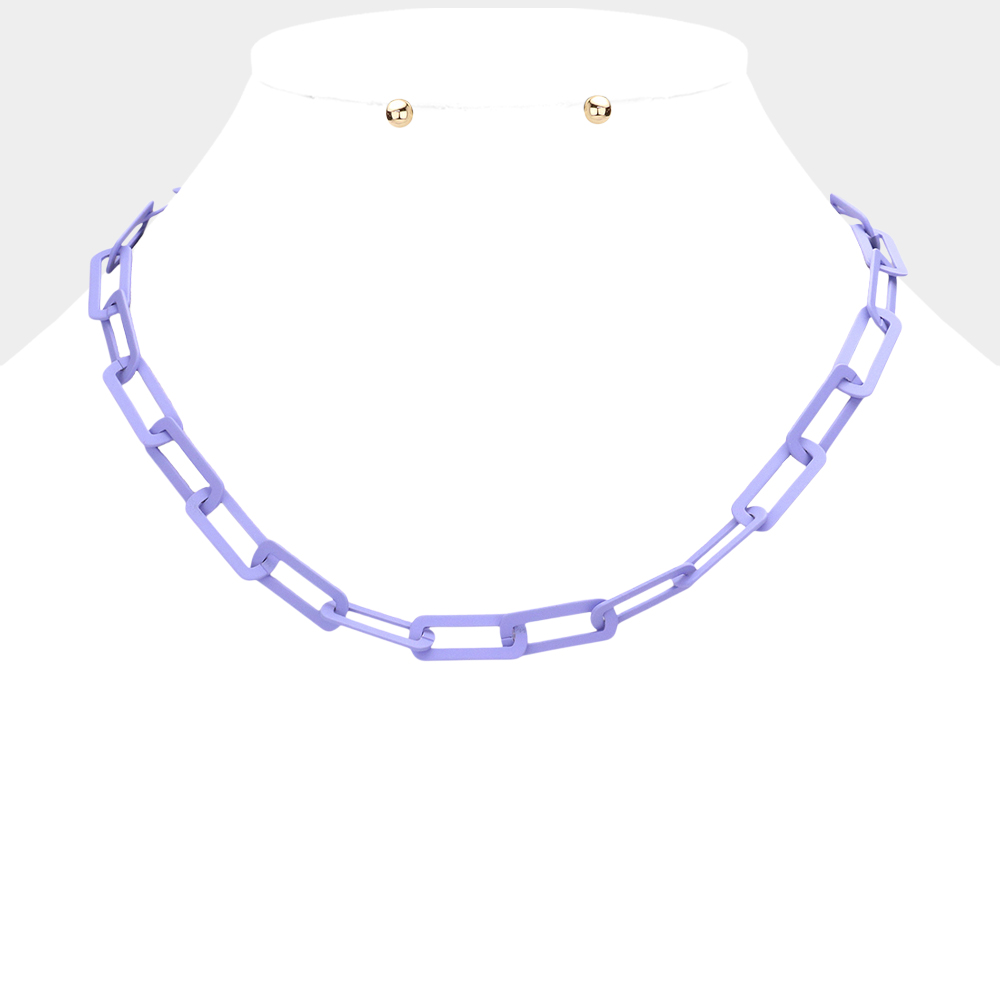 Colored Open Metal Rectangle Link Necklace