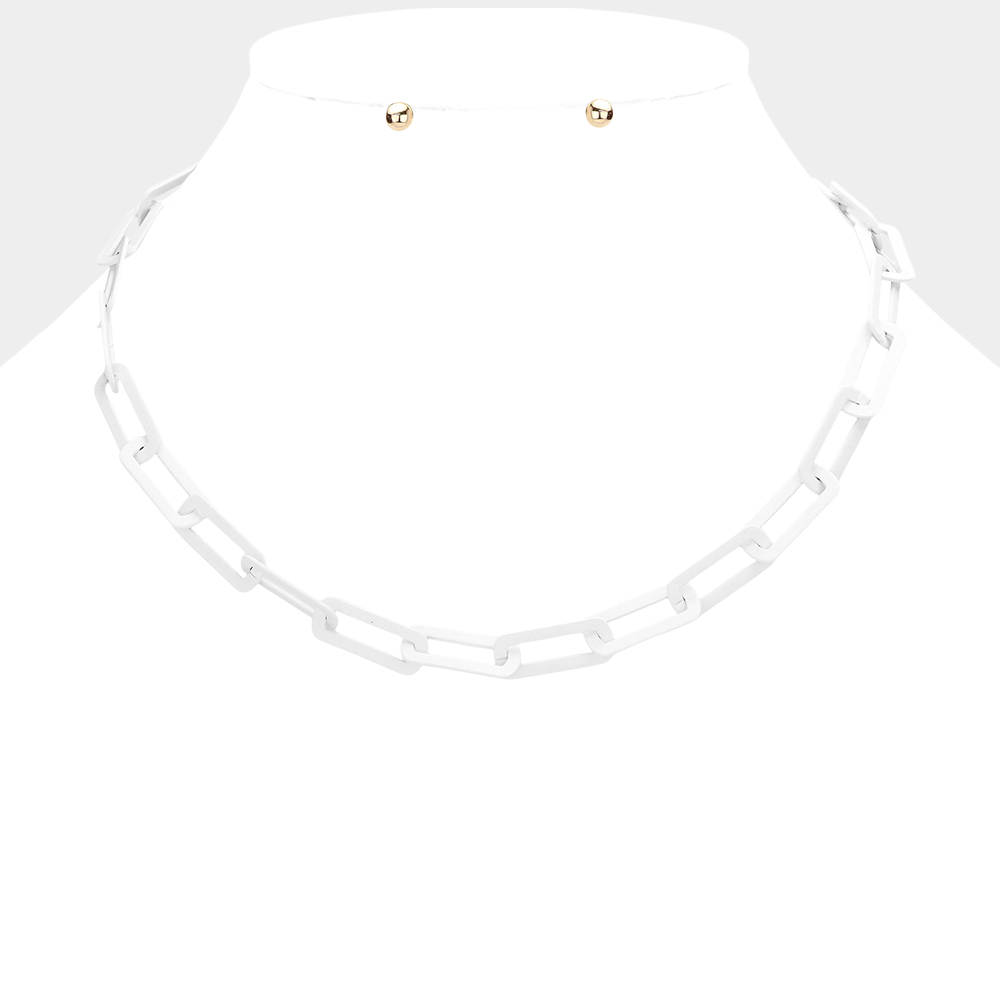 White Gold Dipped Rectangle Stone Cluster Bar Pendant Necklace