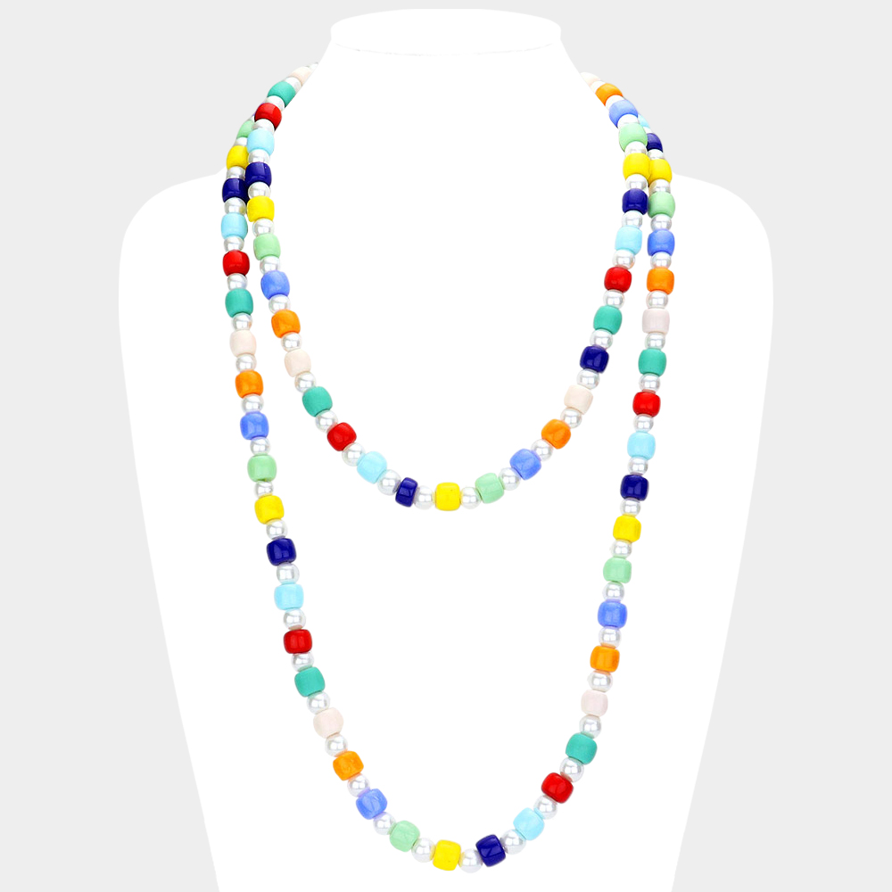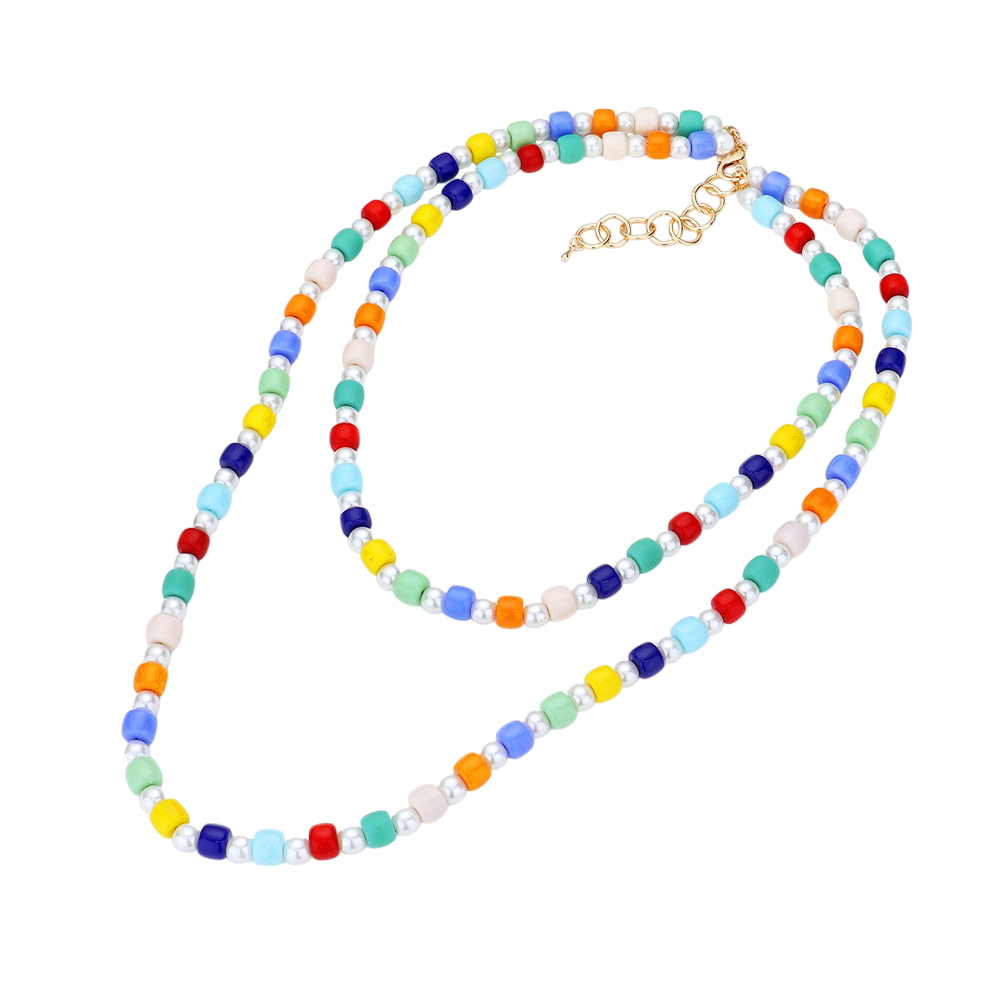 Colorful Bead Pointed Pearl Double Layered Bib Necklace