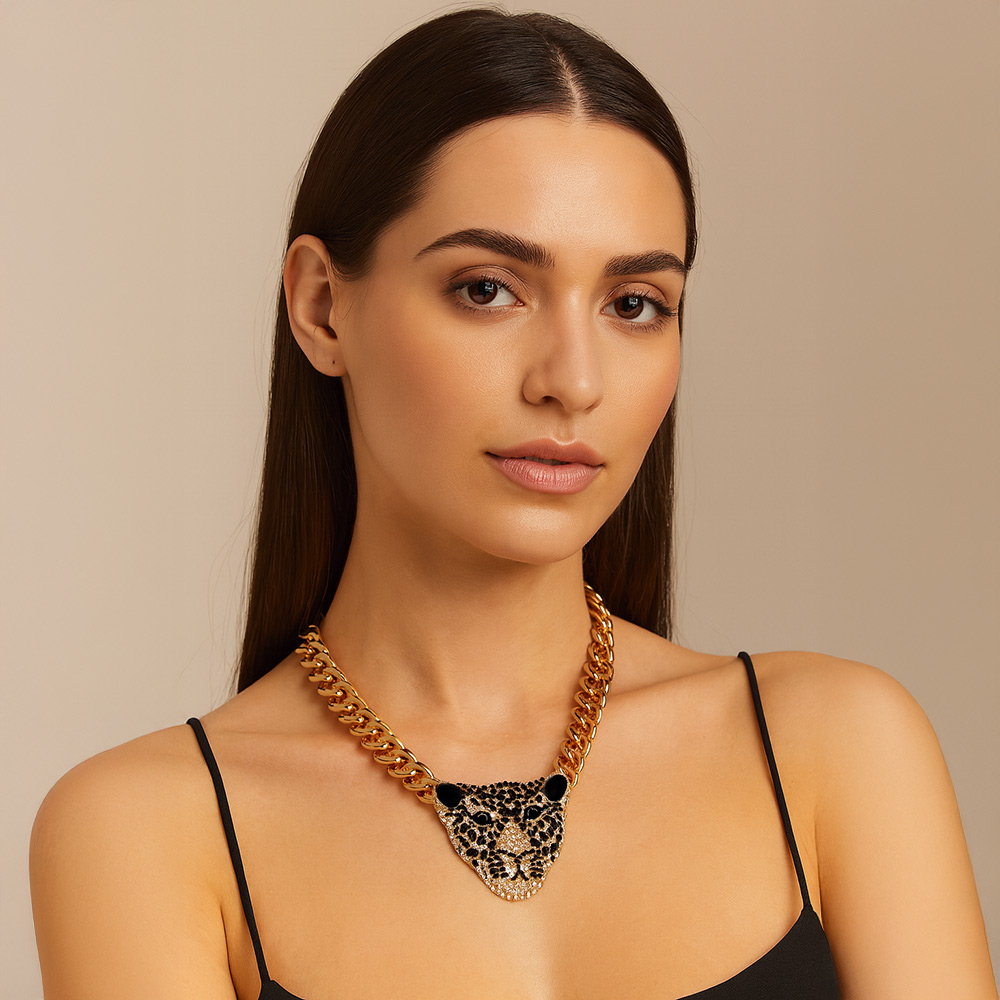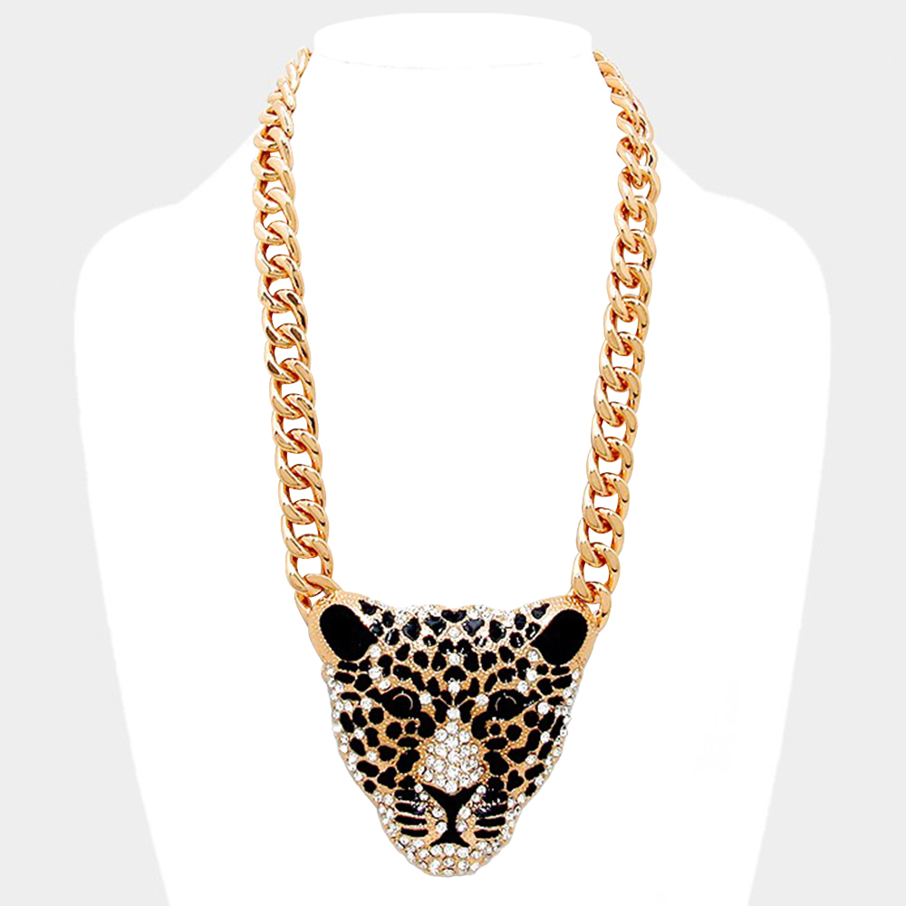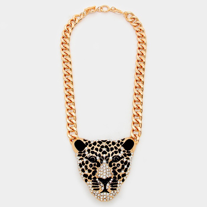 Crystal metal leopard ornate necklace