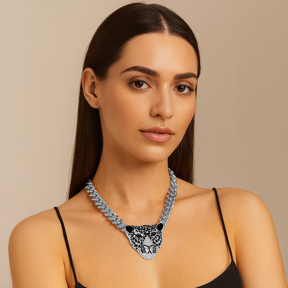 CZ Brass Metal Elephant Pendant Faceted Beaded Choker Necklace