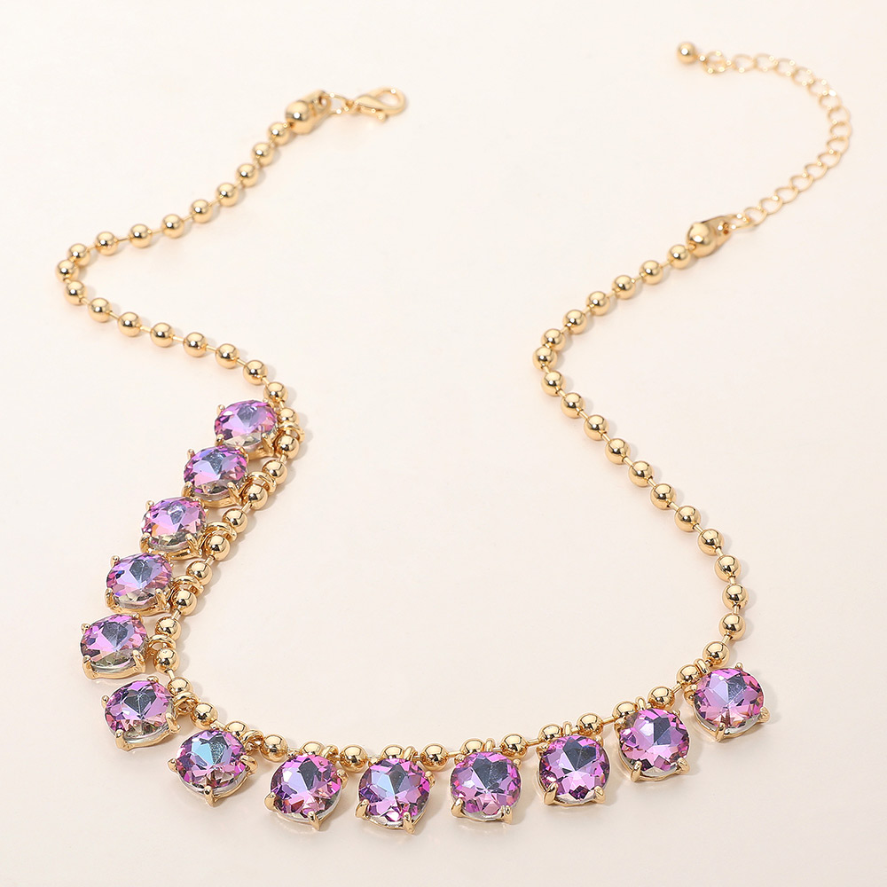 • Elegant necklace featuring a delicate beaded chain accented with faceted round stones arranged along the neckline. Designed to add refined sparkle and balanced detail, this versatile piece suits everyday wear, special occasions, gifting, and boutique collections with a timeless, polished appeal.
