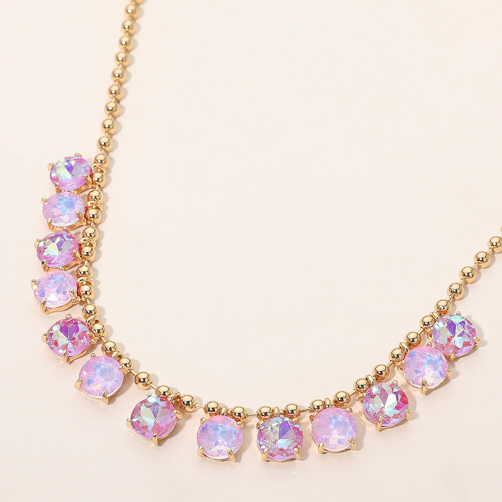 • Elegant necklace featuring a delicate beaded chain accented with faceted round stones arranged along the neckline. Designed to add refined sparkle and balanced detail, this versatile piece suits everyday wear, special occasions, gifting, and boutique collections with a timeless, polished appeal.