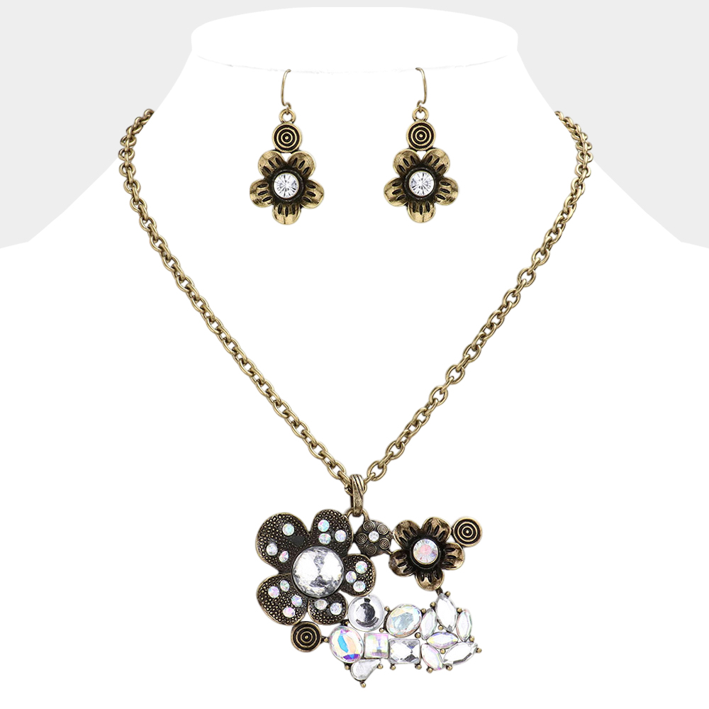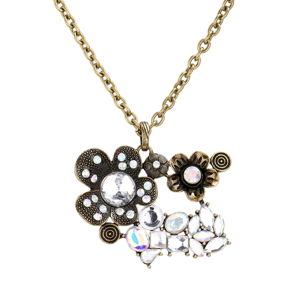 Flower Centered Marquise Stone Cluster Vine Pin Brooch