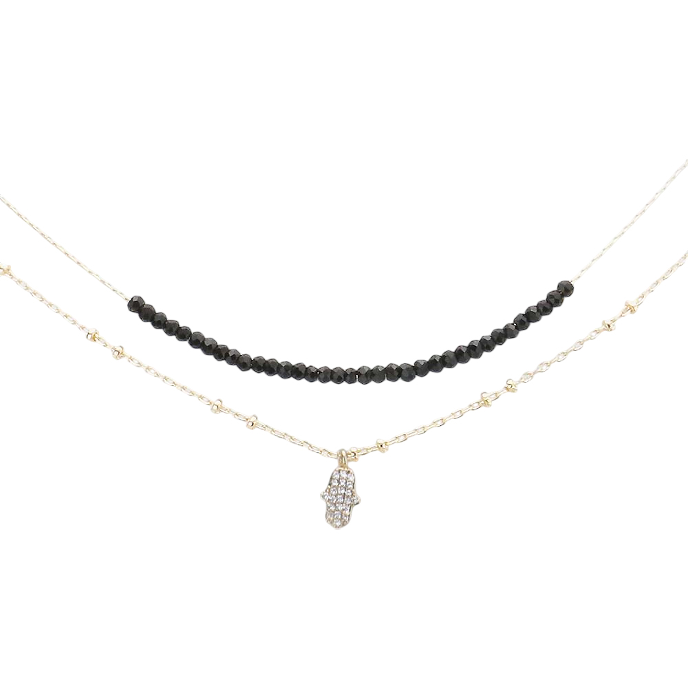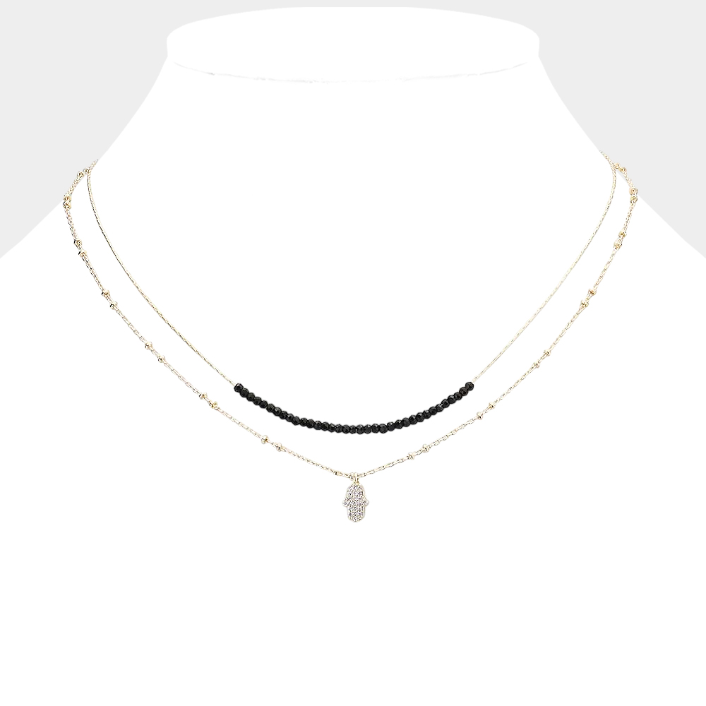 Double Layered Brass Metal CZ Hamsa Hand Pendant Necklace