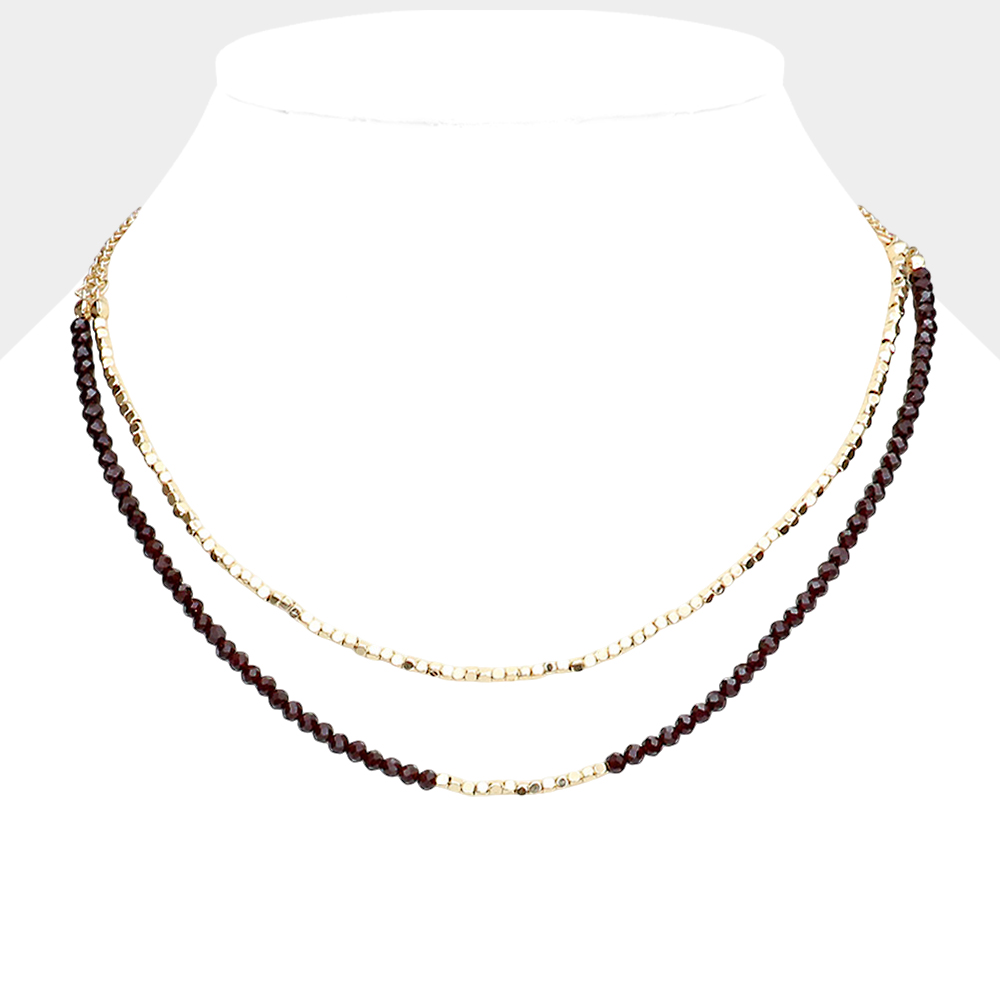 Enamel Rhinestone Embellished Quatrefoil Pendant Triple Layered Necklace