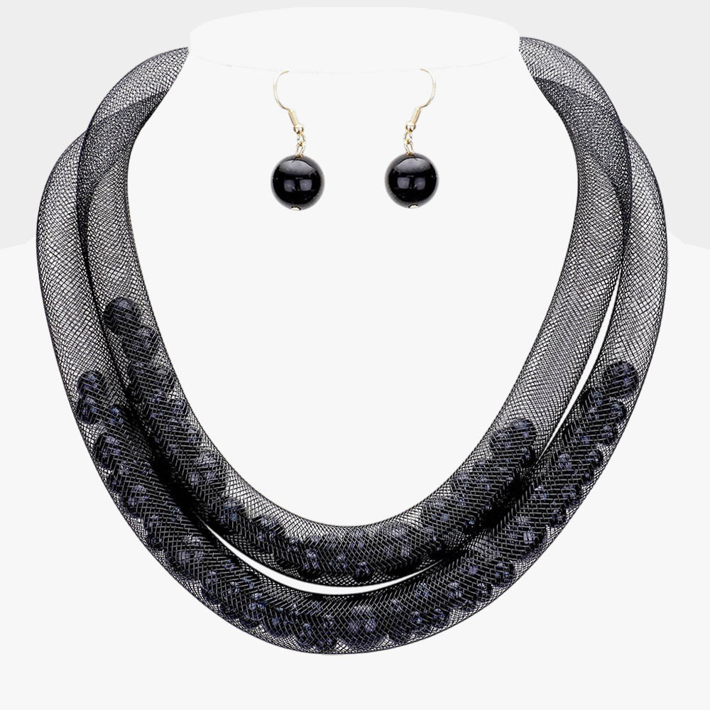 Pearl Accented Triple Layered Mesh Bib Necklace
