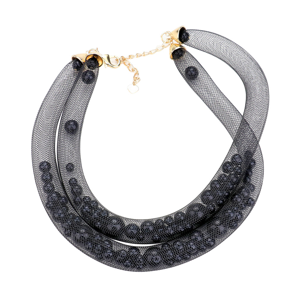 Double Mesh Tube Pearl Collar Necklace
