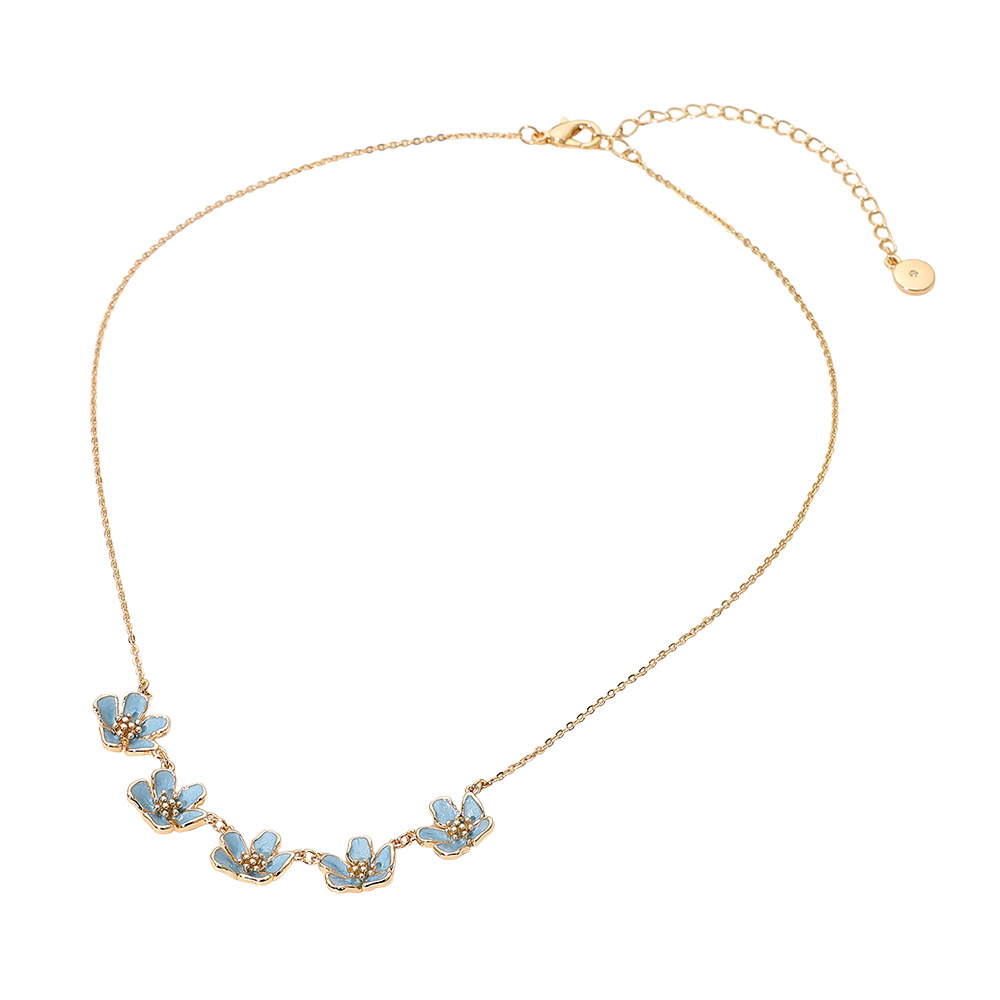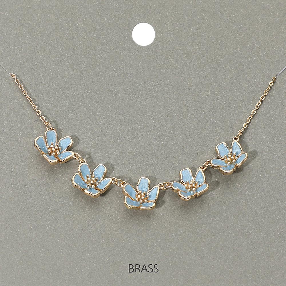 Details • Necklace Size : 16" + 3" L • Decor Size : 0.4" L • Elevate everyday style with the Floral Charm Station Necklace, featuring a series of delicate blossom accents set along a fine chain for graceful movement and subtle sparkle. Perfect for layering or wearing solo as a feminine statement piece. • Brass • Lead and Nickel Compliant