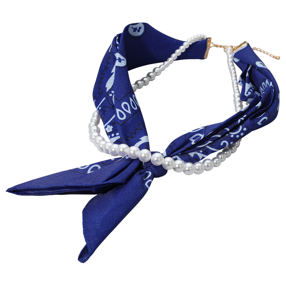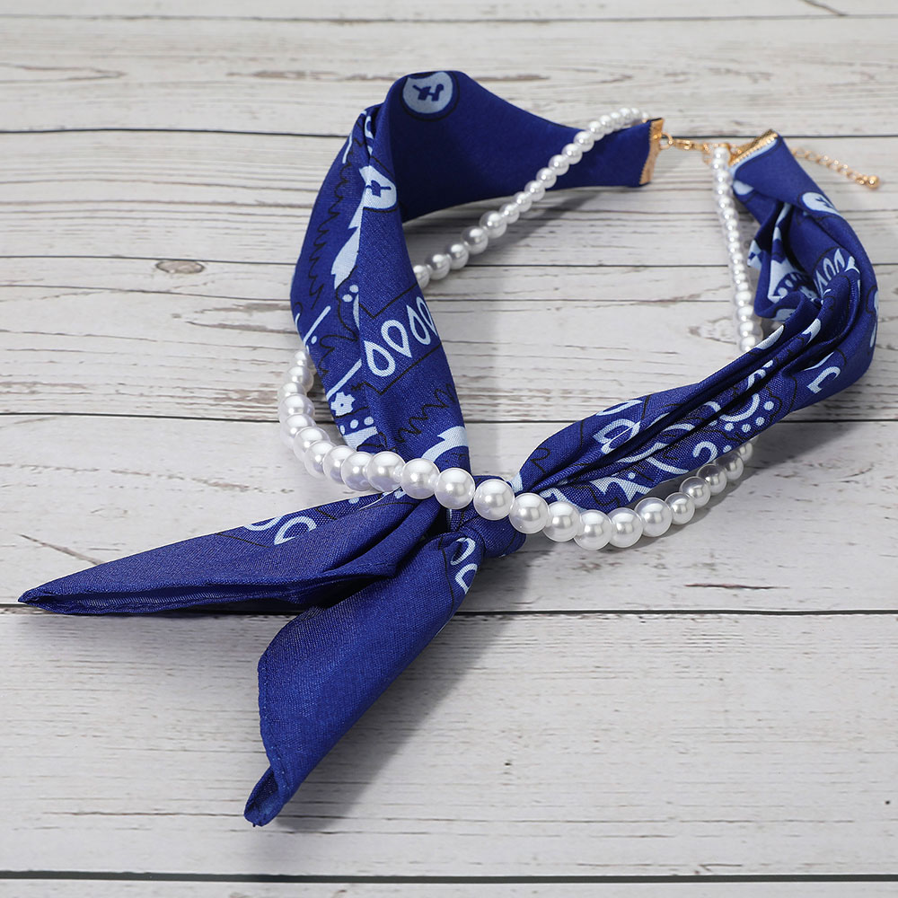 Fabric Bandana Scarf Pearl Layered Necklace Fabric Bandana Scarf Pearl Layered Necklace Fabric Bandana Scarf Pearl Layered Necklace