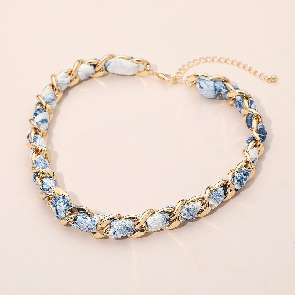 Details • Necklace Size : 15.5" + 3" L • Decor Size : 0.5" L • Print may vary • This stylish chain link necklace features an interwoven fabric design for a chic and modern twist on a classic look. With its adjustable clasp, it offers both comfort and versatility, making it an ideal accessory to elevate casual outfits or complement elegant attire. • Lead and Nickel Compliant