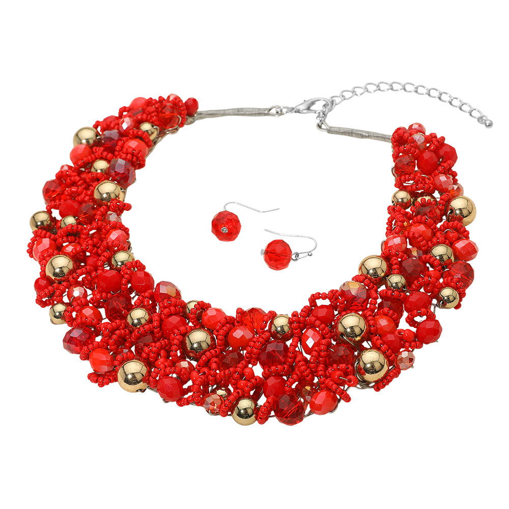 • Glamorous necklace and earring set featuring clustered beads arranged in a bold statement design, perfect for elevating special occasion outfits. This coordinated set adds sparkle and dimension, making it ideal for events, parties, or elegant evening looks.