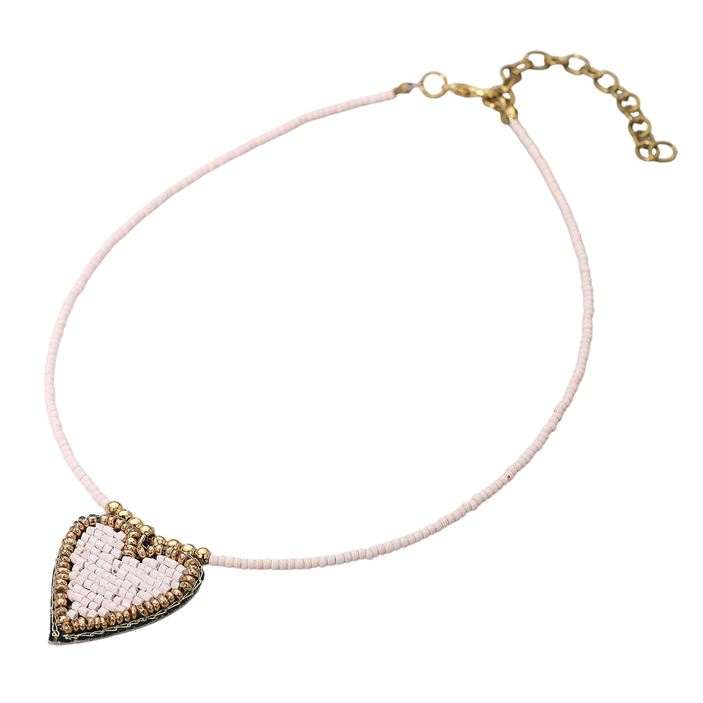 Details • Necklace Size : 14" + 3" L • Pendant Size : 1" X 1" • Charming necklace featuring a hand-beaded heart pendant on a delicate beaded chain. Perfect for adding a romantic touch to casual or layered looks. Lightweight, feminine, and versatile, this necklace brings a subtle boho elegance to your everyday accessory collection. • Lead and Nickel Compliant • Made In India