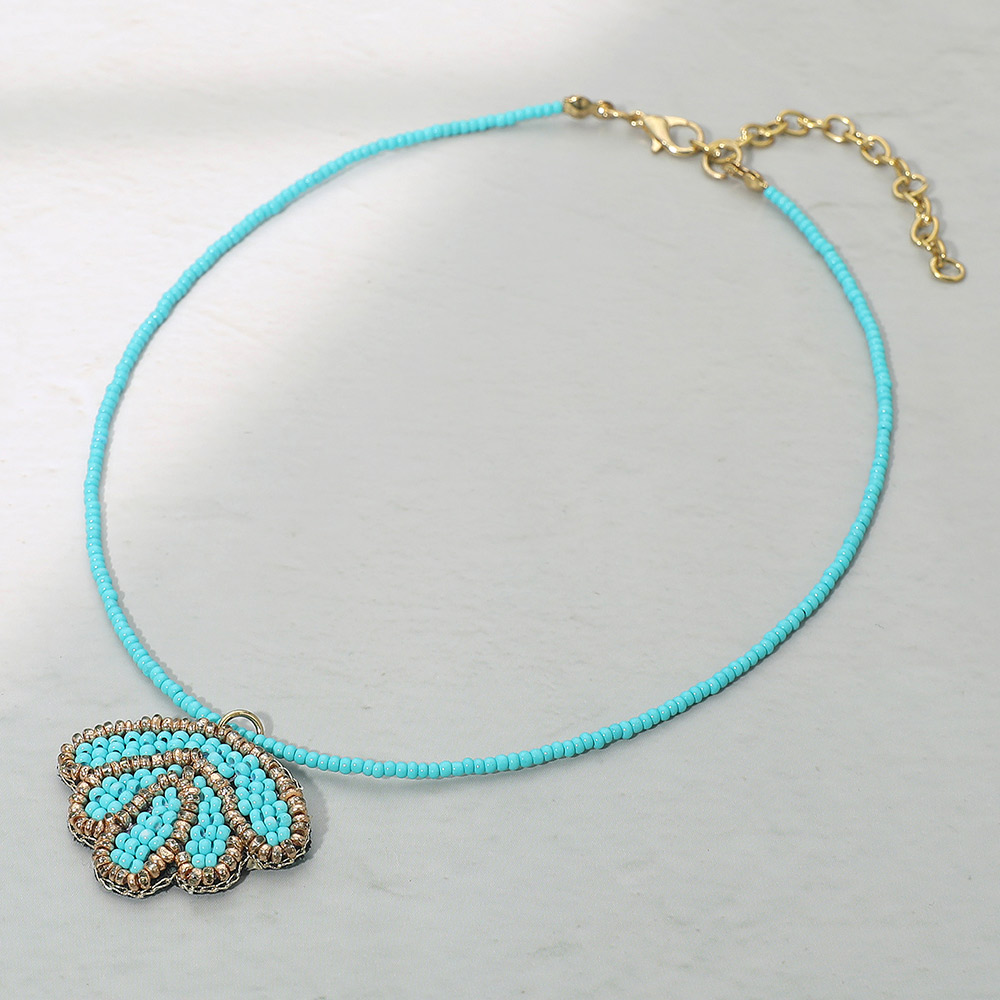 • Elegant necklace featuring a handcrafted beaded leaf pendant on a fine beaded chain. Adds a touch of bohemian charm and natural elegance to casual or dressy looks. Lightweight and stylish, this piece is perfect for layering or wearing as a statement accent.