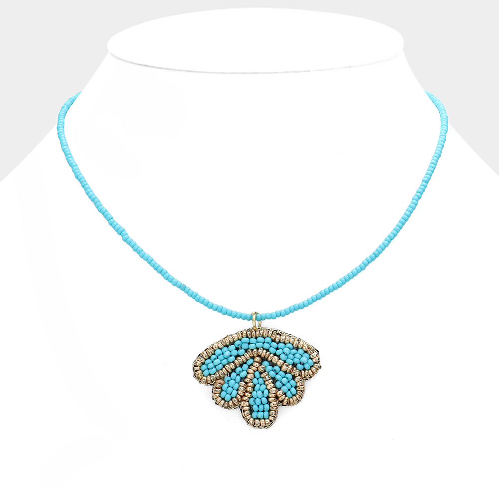 Felt Back Seed Beaded Shell Pendant Necklace Felt Back Seed Beaded Shell Pendant Necklace Felt Back Seed Beaded Shell Pendant Necklace