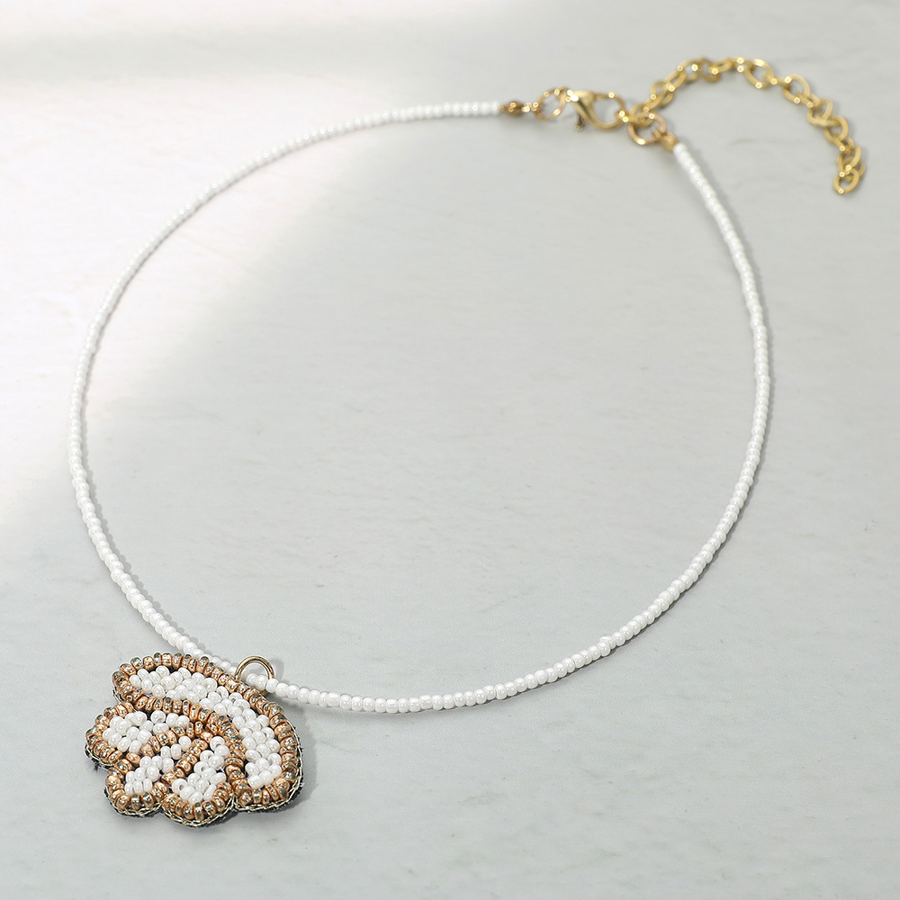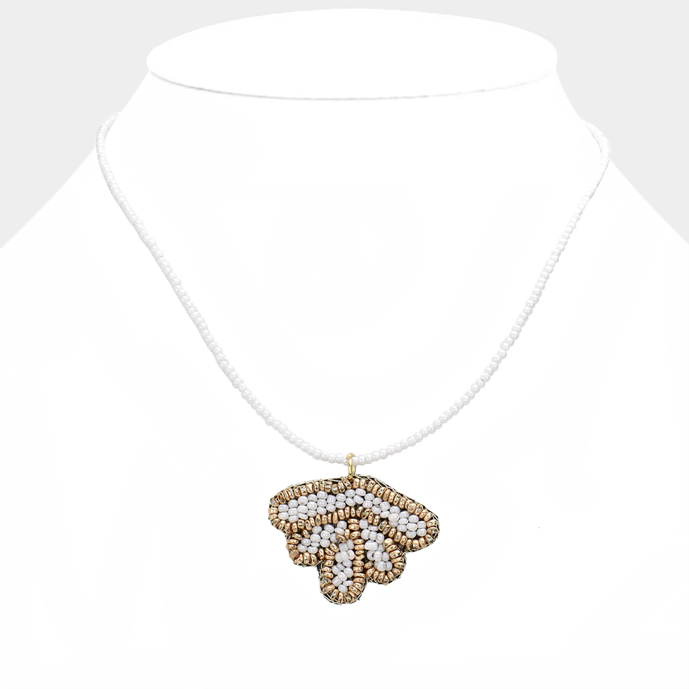 Felt Back Seed Beaded Shell Pendant Necklace Felt Back Seed Beaded Shell Pendant Necklace Felt Back Seed Beaded Shell Pendant Necklace