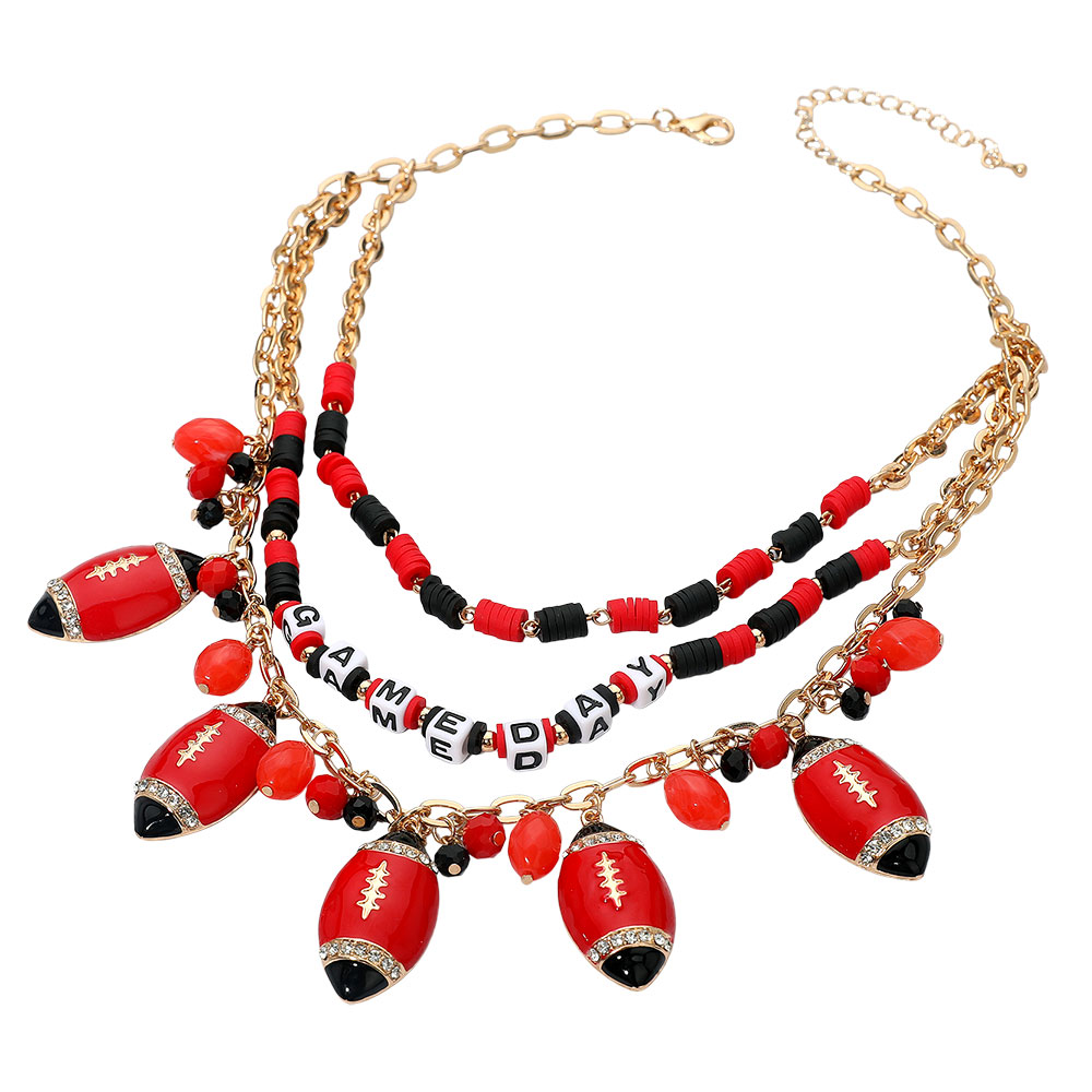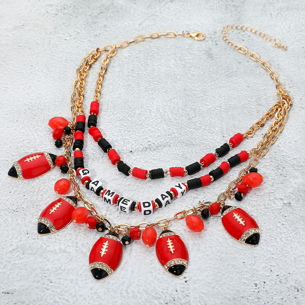 Football Charm Embellished GAME DAY Heishi Beaded Layered Necklace