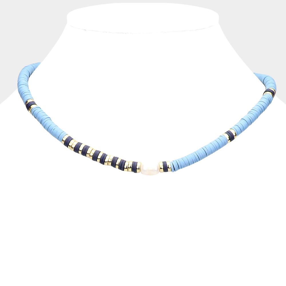 Freshwater Pearl Accented Heishi Beaded Necklace