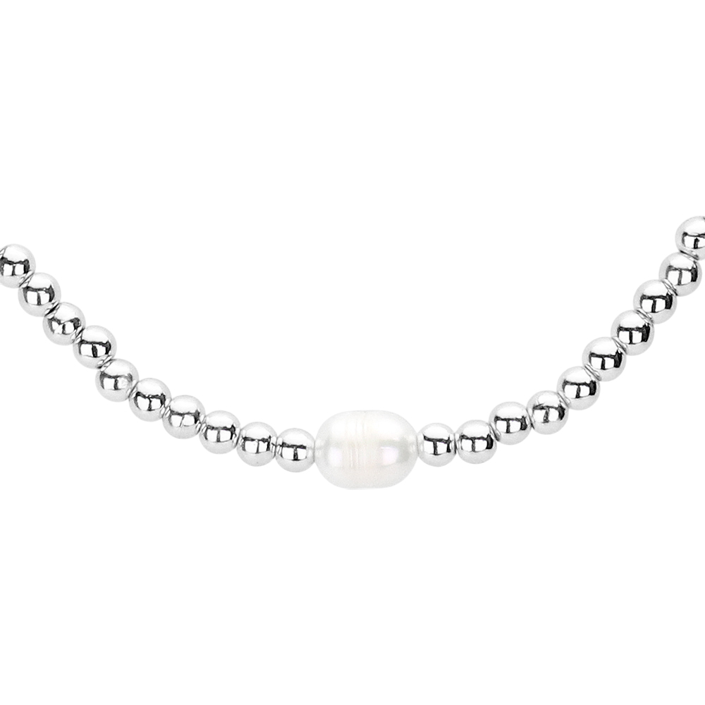 Freshwater Pearl Accented Metal Ball Necklace