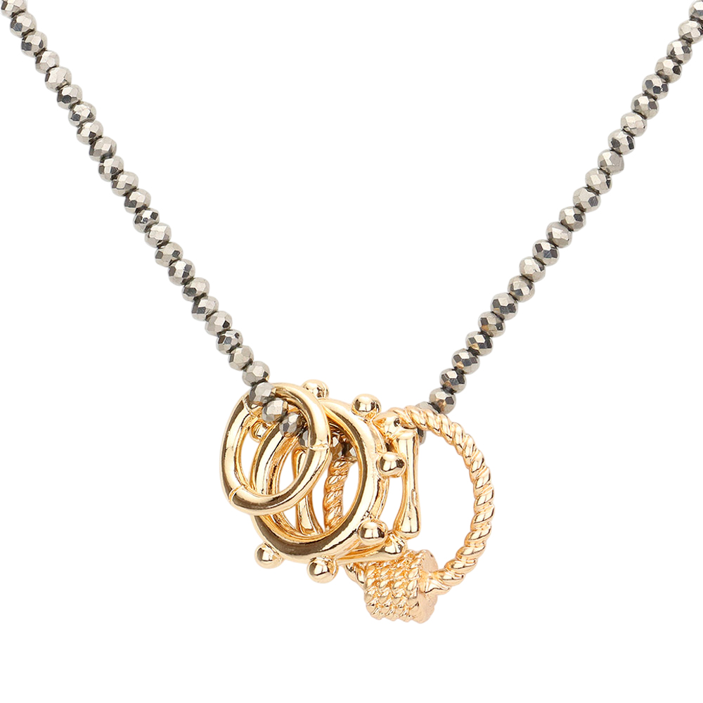 Geometric Open Metal Pendant Faceted Beaded Necklace