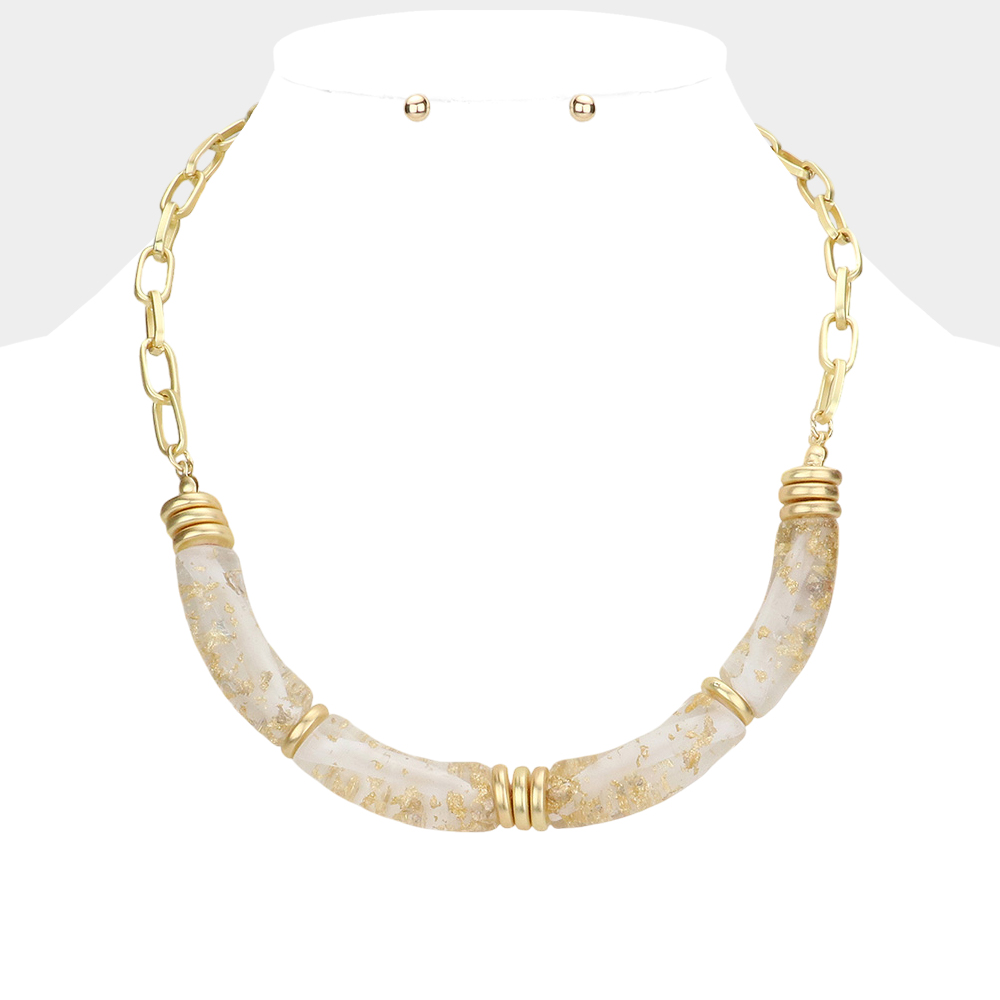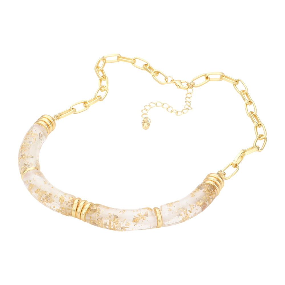 Lucite Bead Cluster Teardrop Link Statement Necklace