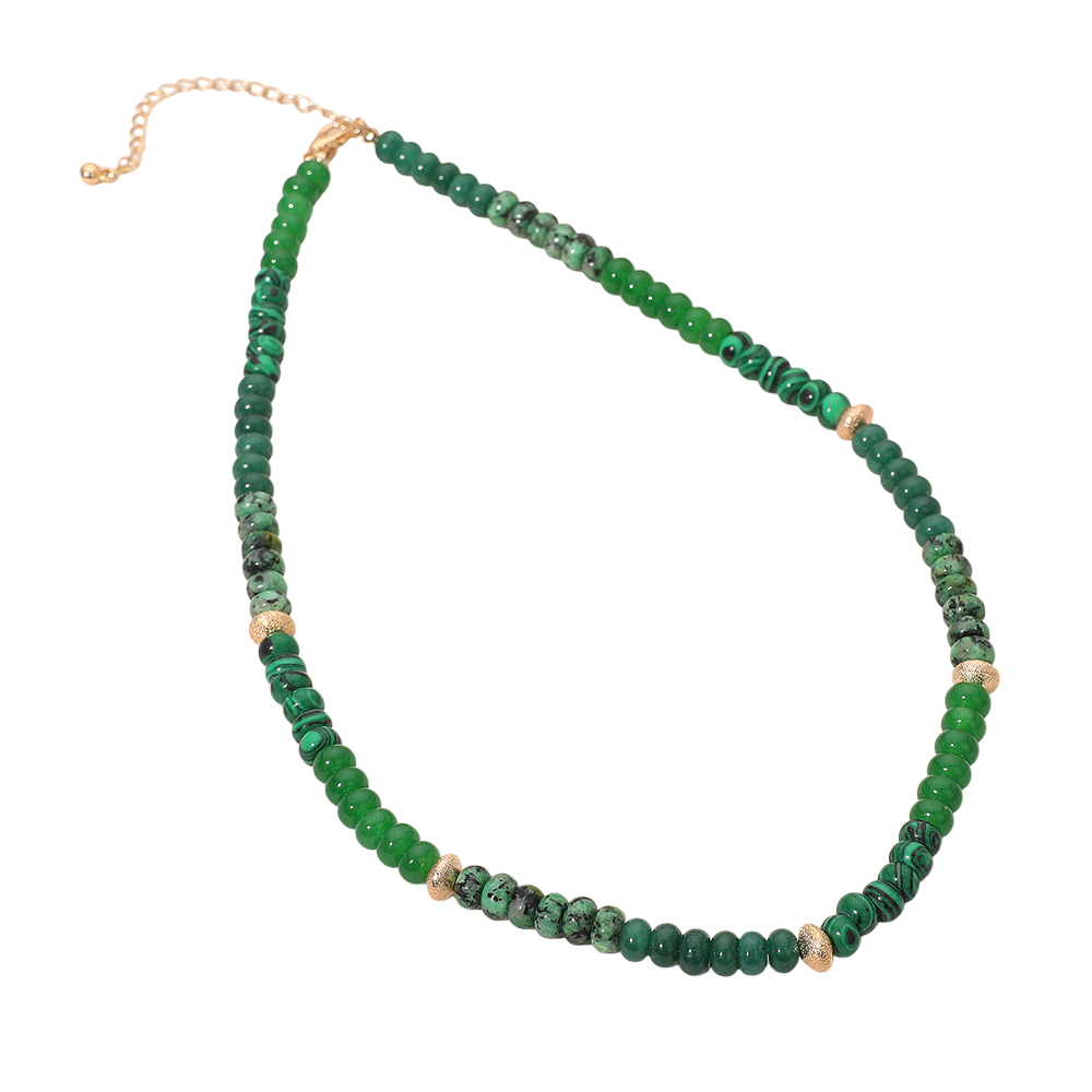Details • Necklace Size : 17" + 2.75" L • Decor Size : 0.25" L • Elegant beaded necklace featuring round polished beads and gold accent spacers for a refined layered look. Designed for versatile styling, this statement necklace adds sophistication to casual or formal outfits, making it a perfect accessory for any occasion or season. • Lead and Nickel Compliant