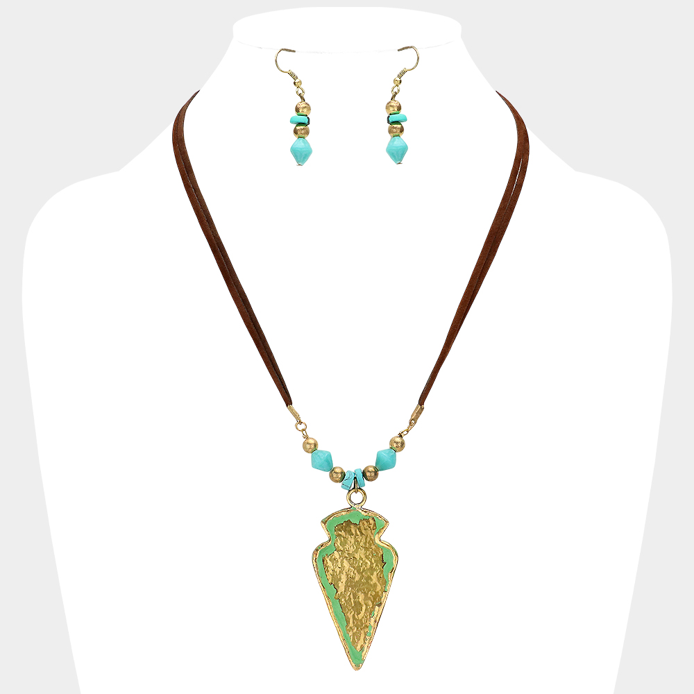 Turquoise Stone Accented Arrow & Gun Pendant Necklace