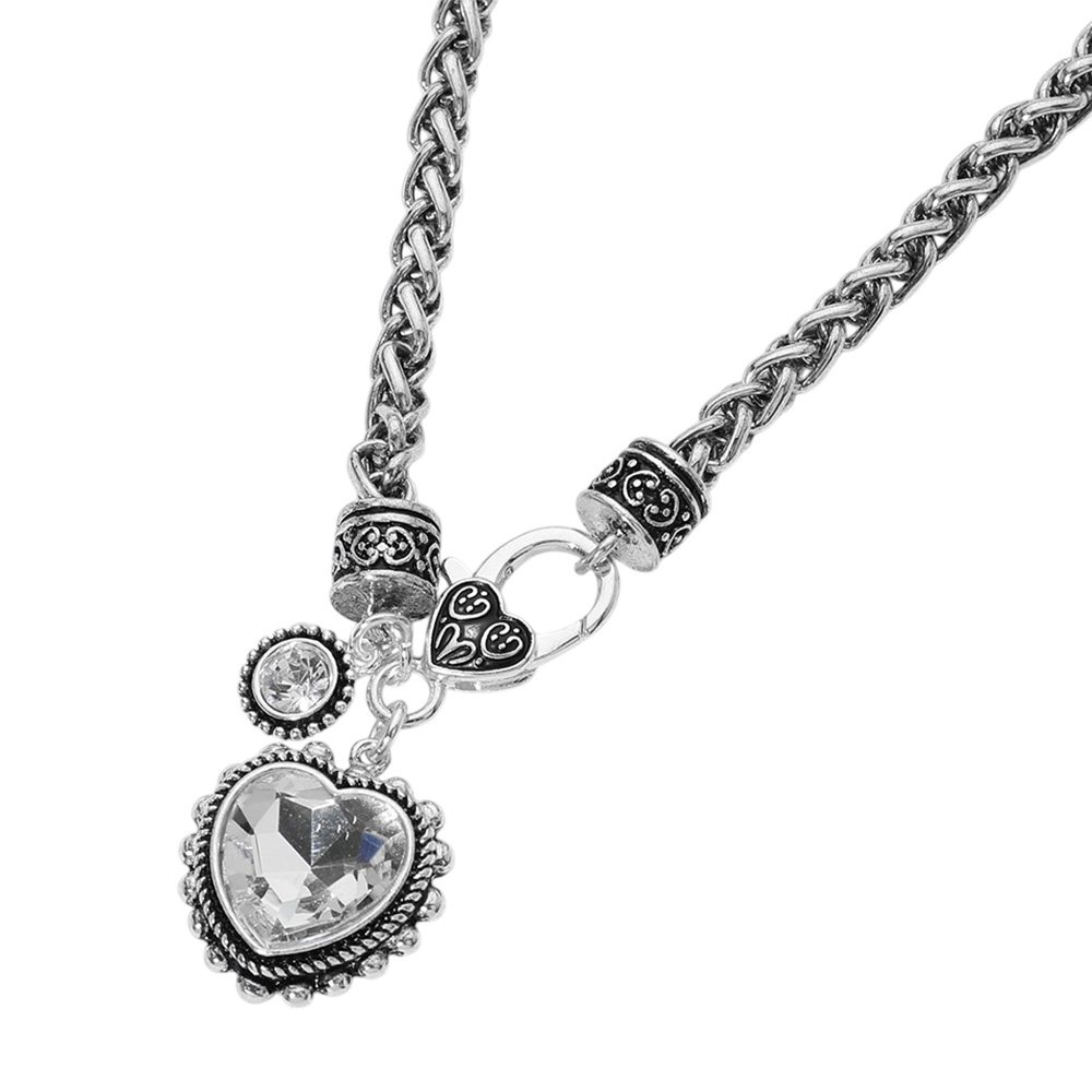Heart Stone Pointed Pendant Antique Metal Necklace