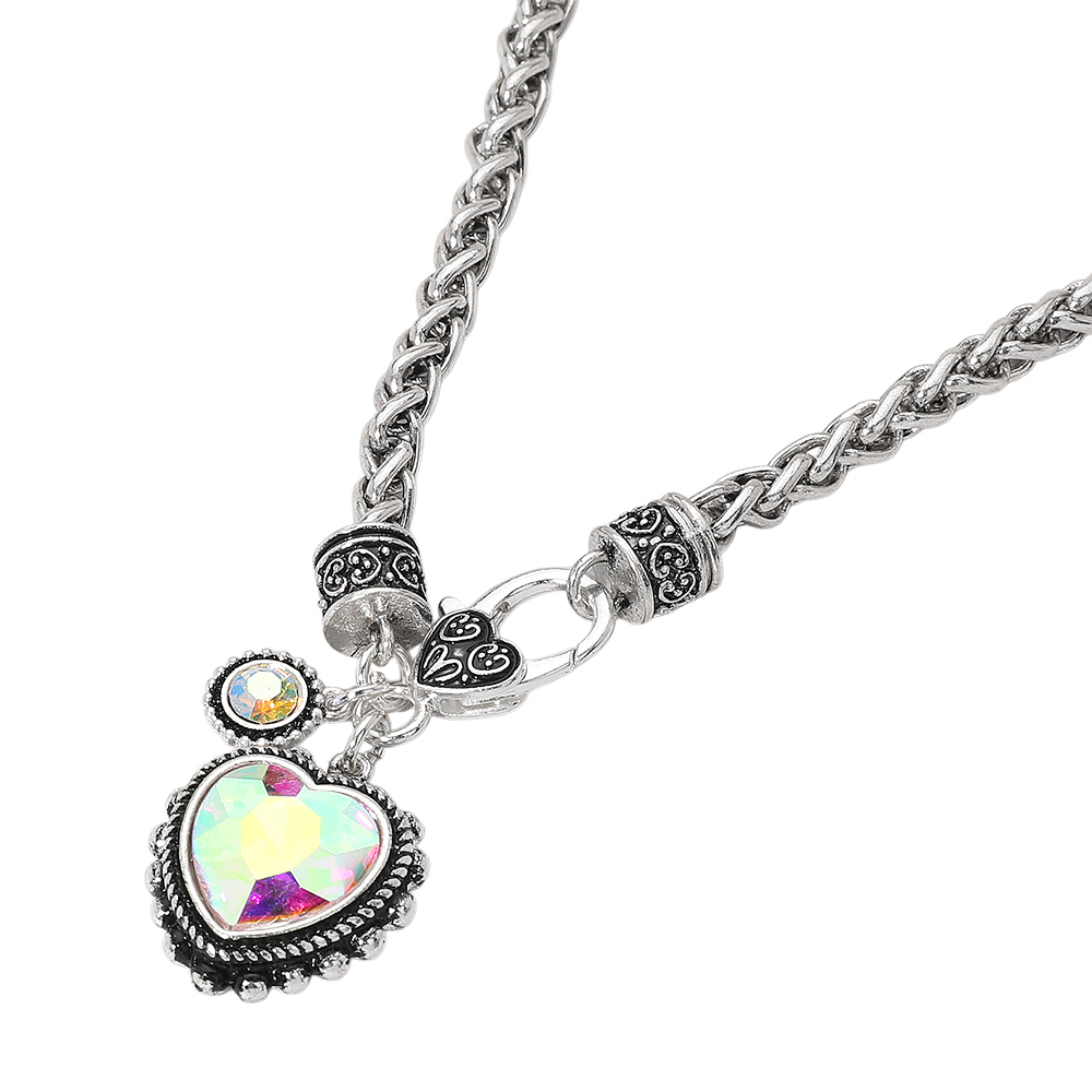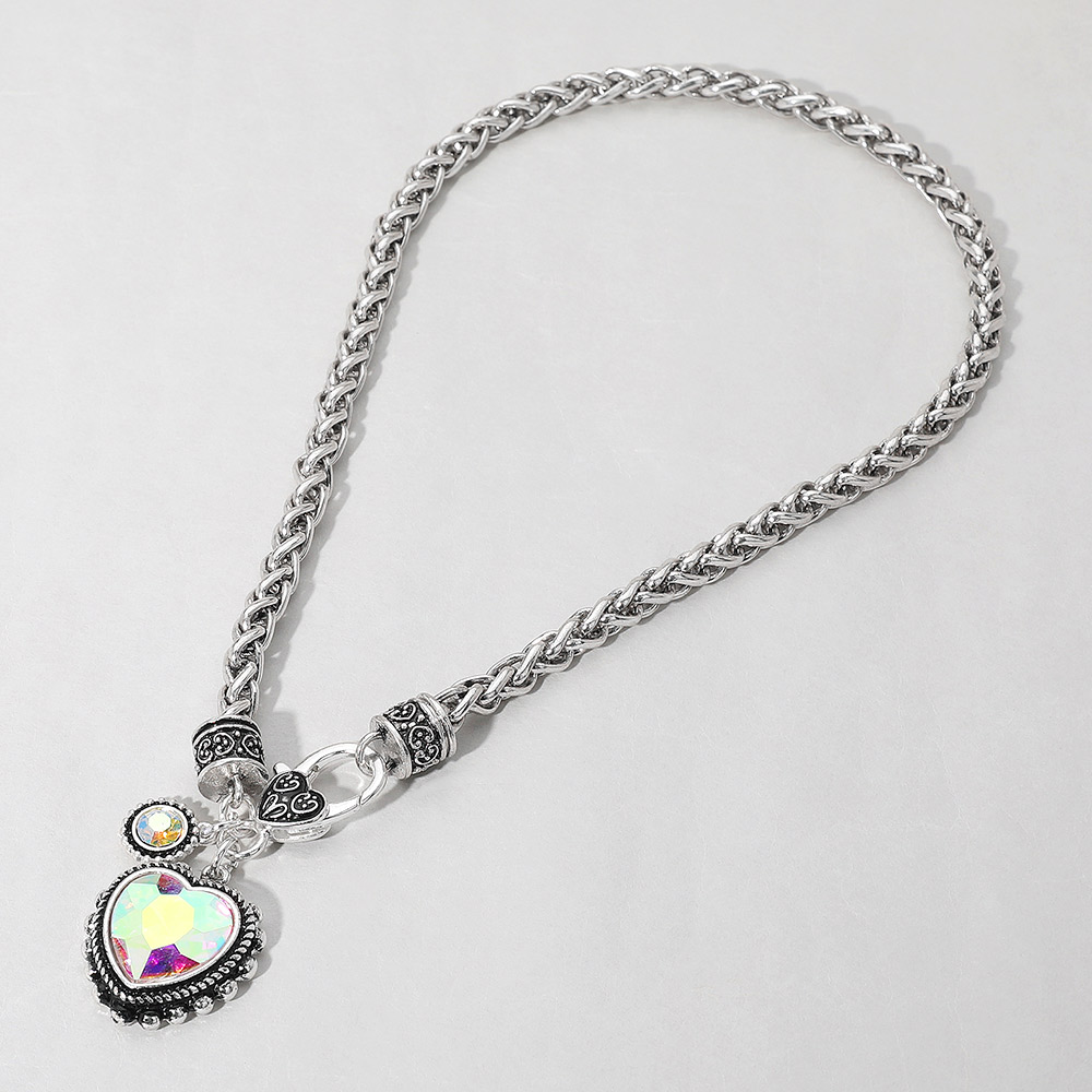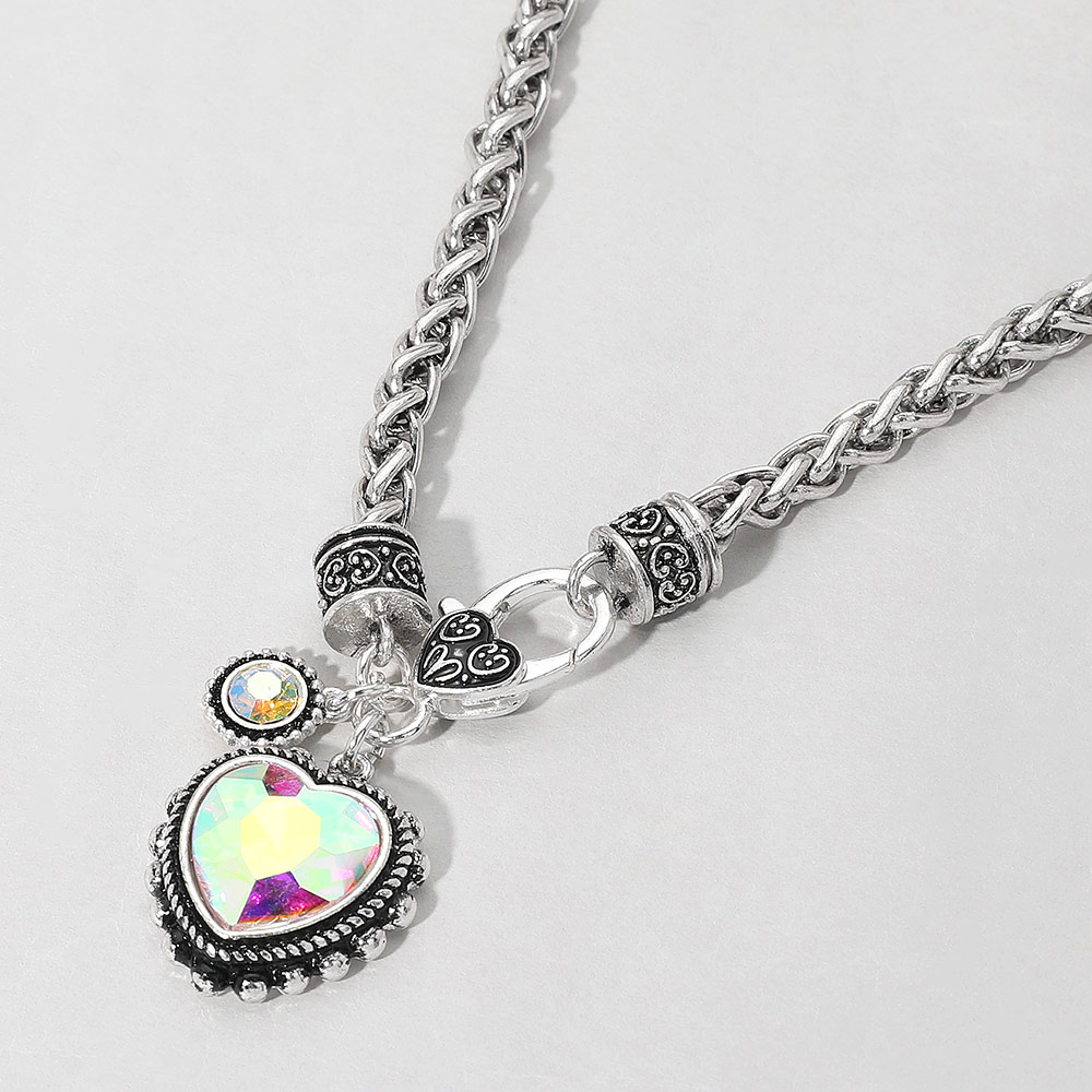 Heart Stone Pointed Pendant Antique Metal Necklace