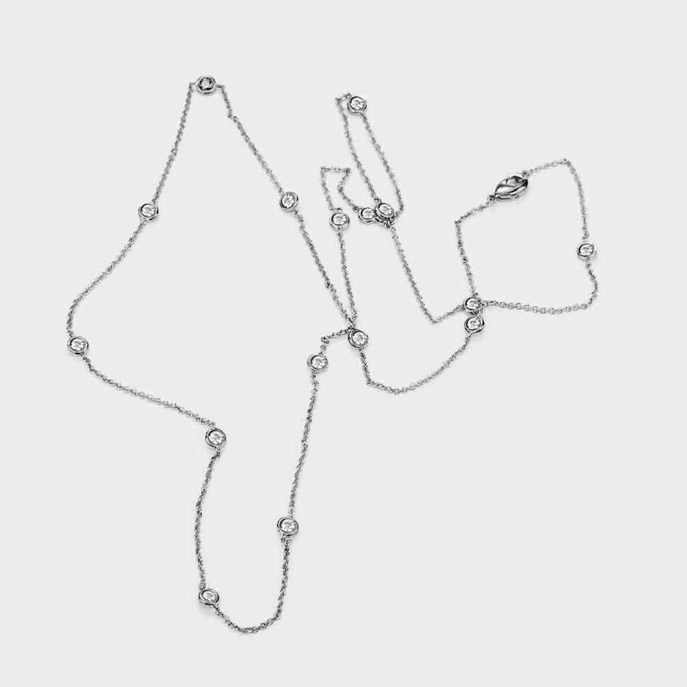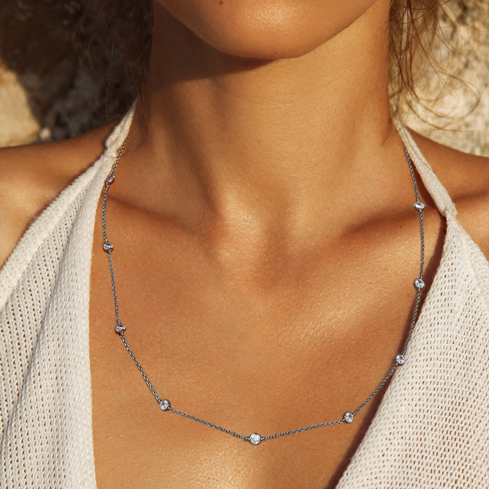 White Gold Dipped Brass Metal Round CZ Station Necklace