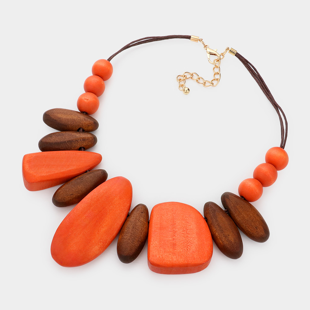 Colorful Wood Ball Pointed Triple Layered Necklace