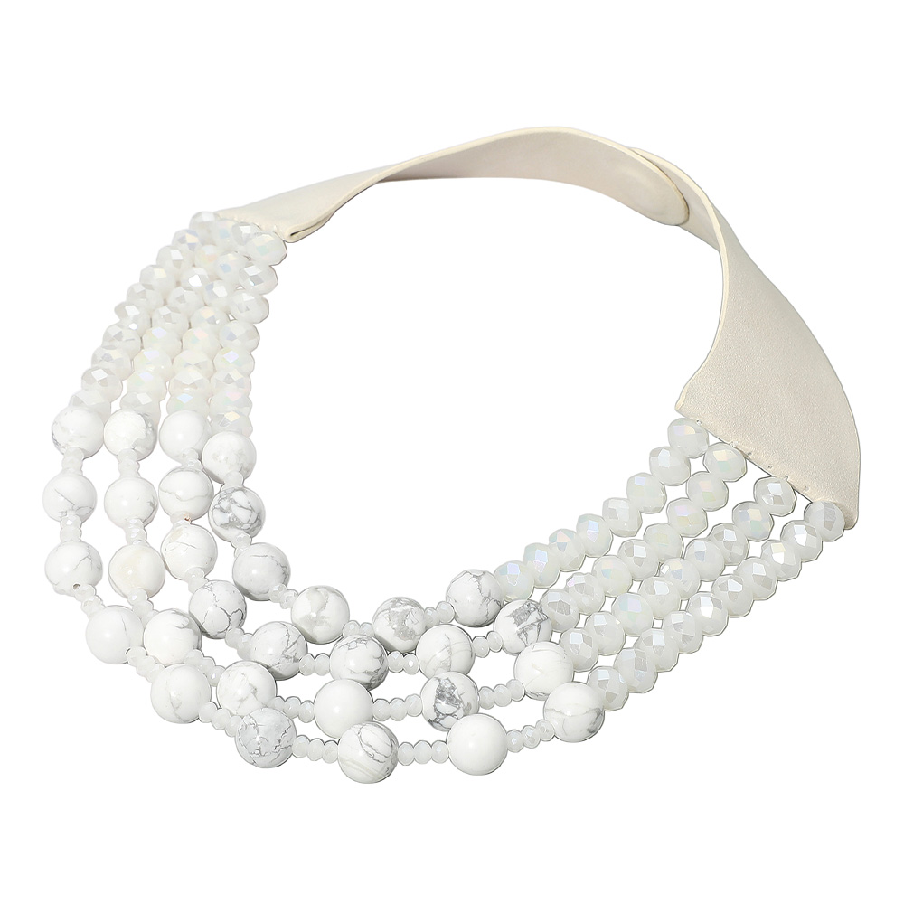 Details • Necklace Size : 17.5" + 1.5" L • Decor Size : 3" L • Magnetic Closure • This layered necklace combines faceted beads and natural stone accents for a textured, elegant finish. Complete with soft suede ends for comfort, it adds an earthy yet refined charm to both casual and dressy looks, perfect for enhancing everyday sophistication. • Lead and Nickel Compliant