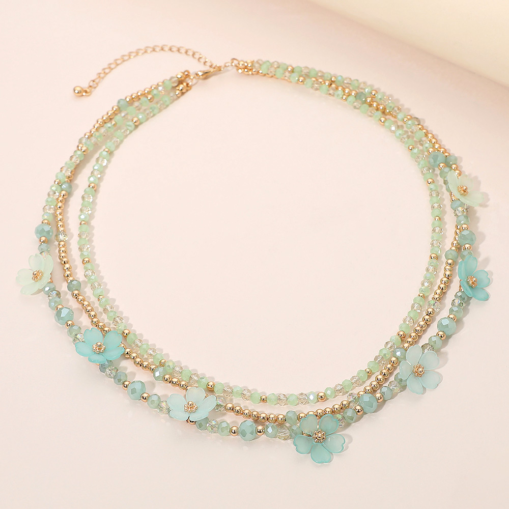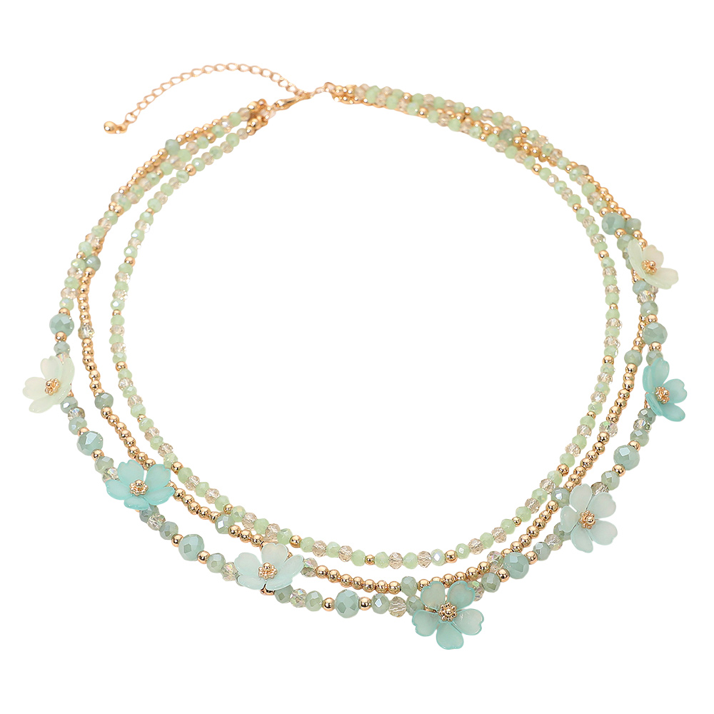 Details • Necklace Size : 15.5" + 3" L • Decor Size : 2" L • Embrace elegance with this layered floral beaded necklace. Featuring delicate multi-strand design with shimmering beads and petite flower accents, it adds a playful yet refined touch to any ensemble—perfect for both casual charm and special occasions. • Lead and Nickel Compliant