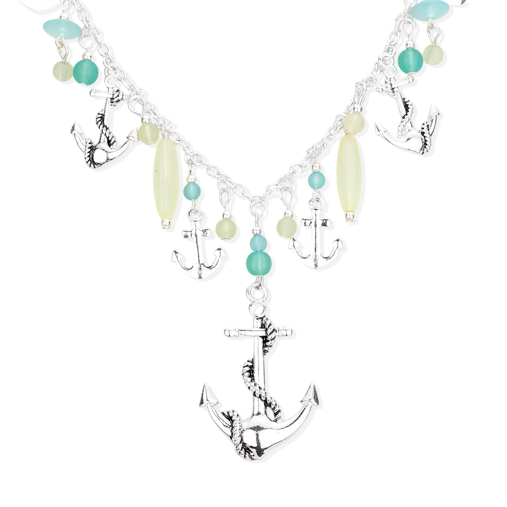 Anchor Sea Glass Stretch Bracelet