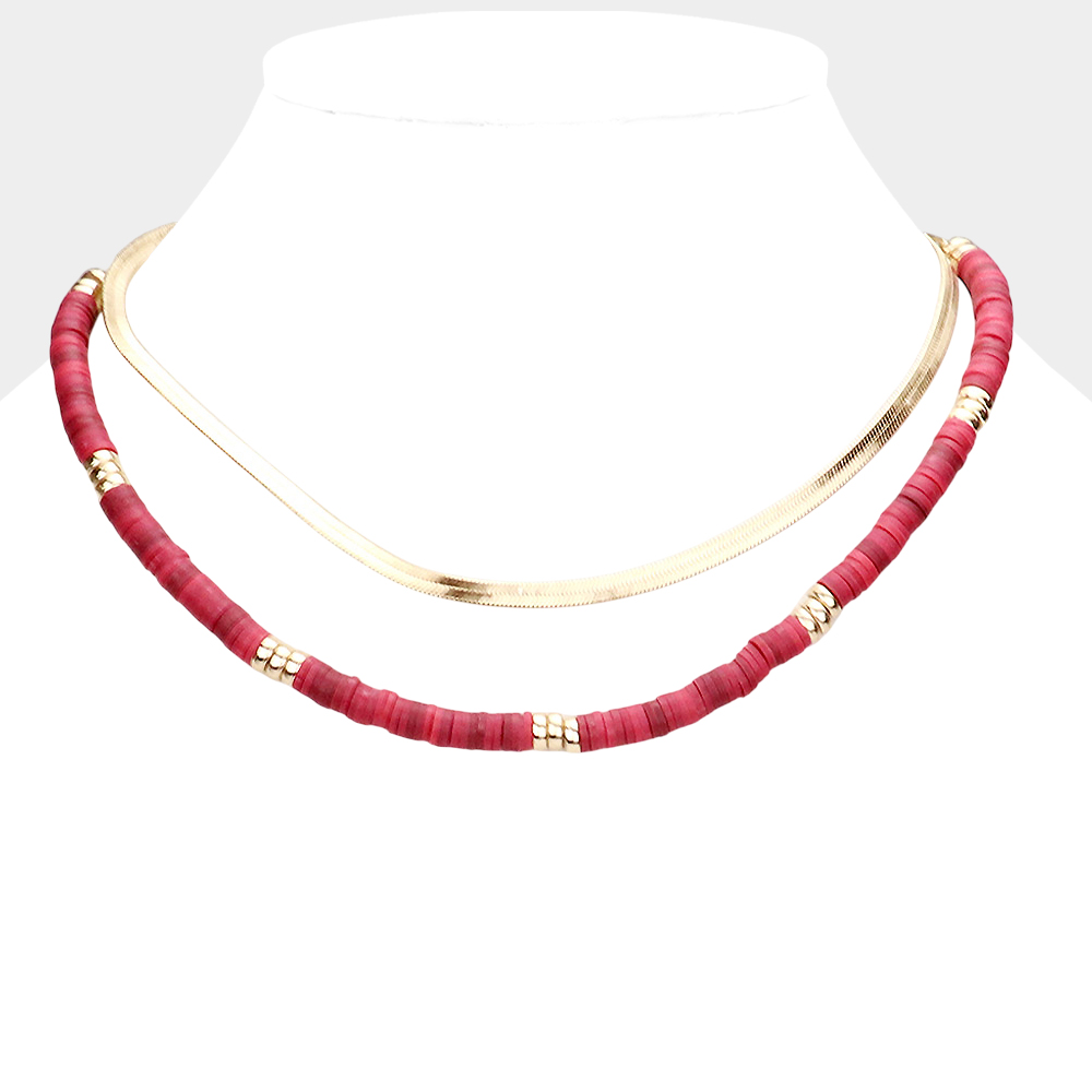 Metal Chain Heishi Beaded Double Layered Necklace