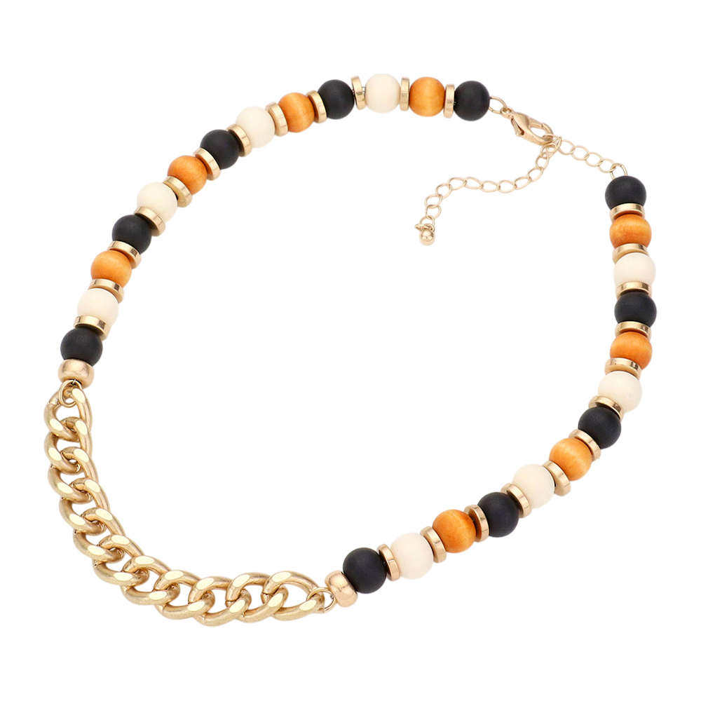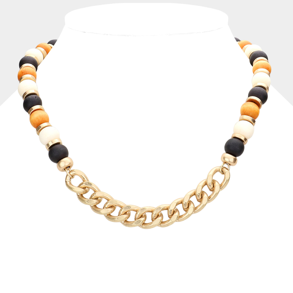 Leopard Pattern Shamballa Ball Accented Faceted Bead Long Necklace