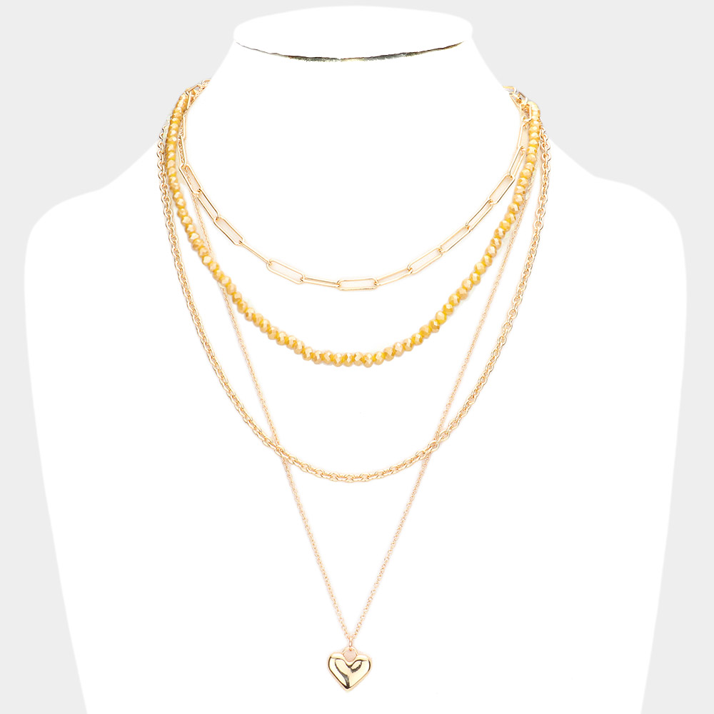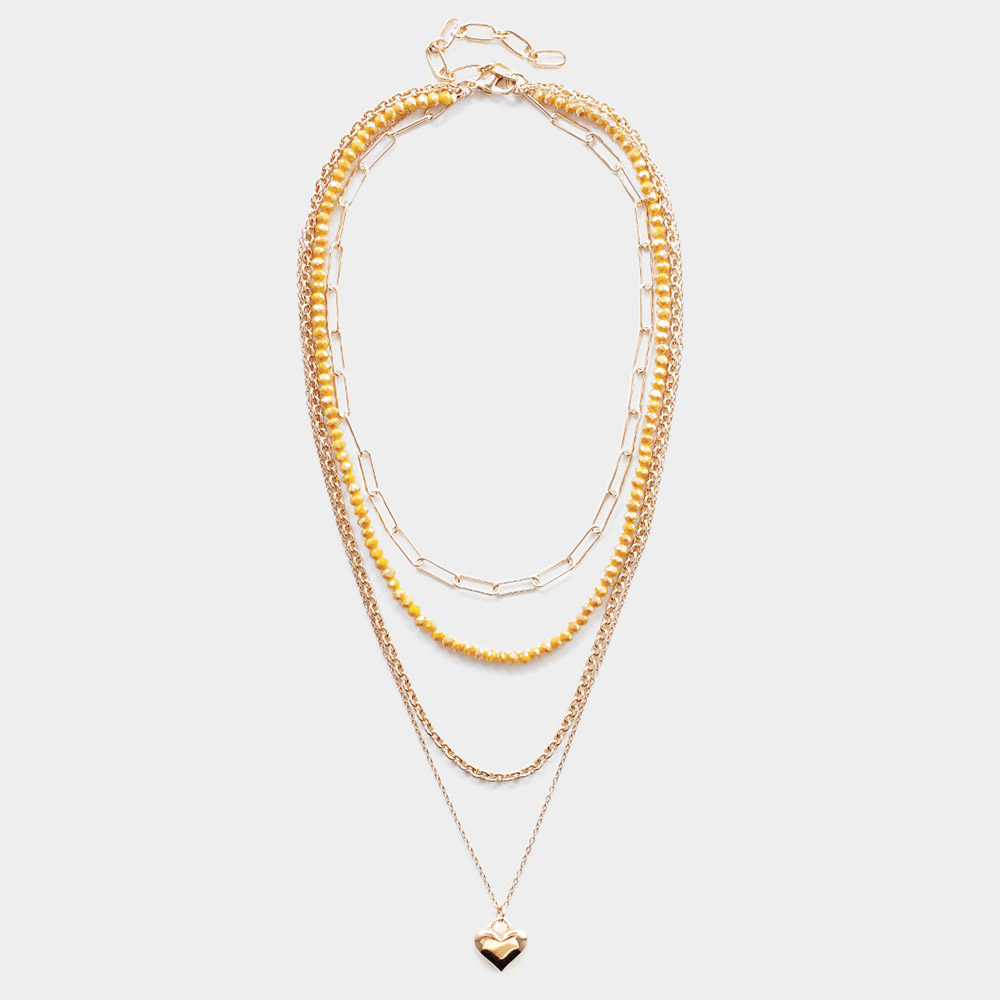 White Gold Dipped Metal Chain Detailed Heart Pendant Necklace
