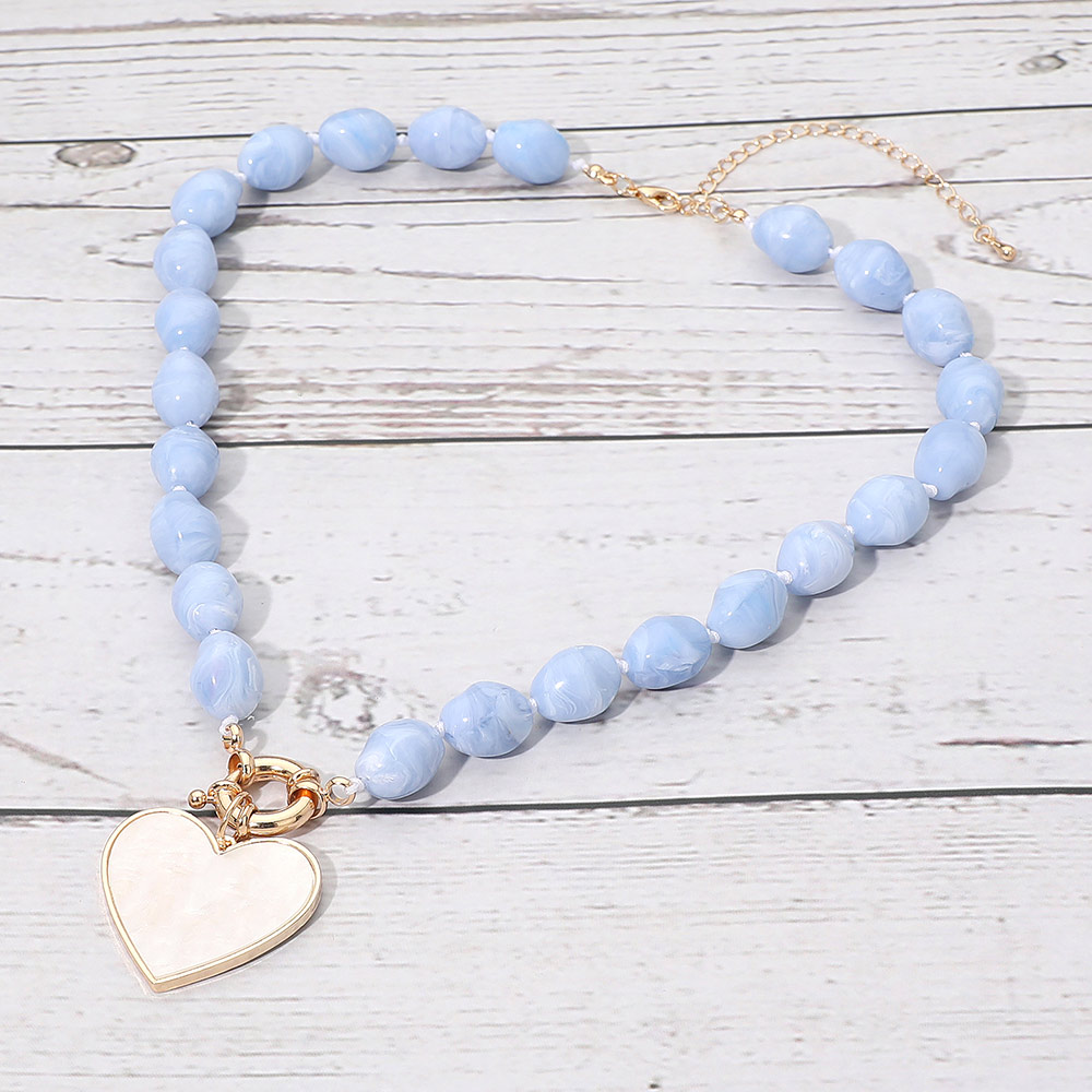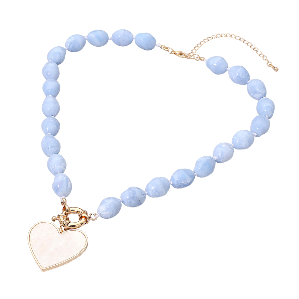 Mother of Pearl Heart Pendant Marbled Pebble Beaded Necklace Mother of Pearl Heart Pendant Marbled Pebble Beaded Necklace