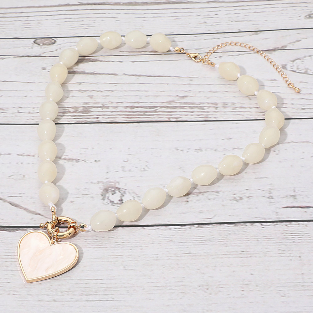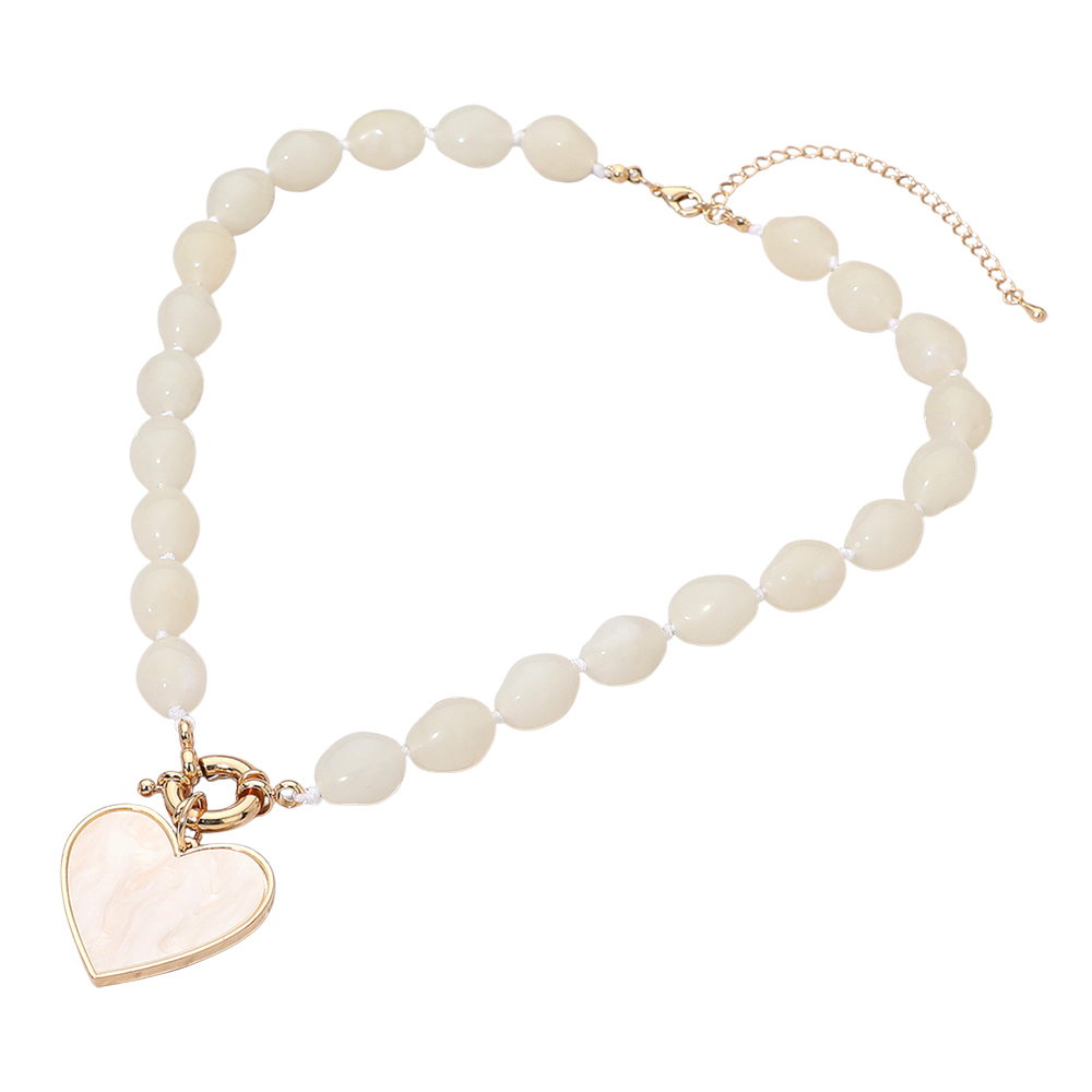 Mother of Pearl Heart Pendant Marbled Pebble Beaded Necklace Mother of Pearl Heart Pendant Marbled Pebble Beaded Necklace