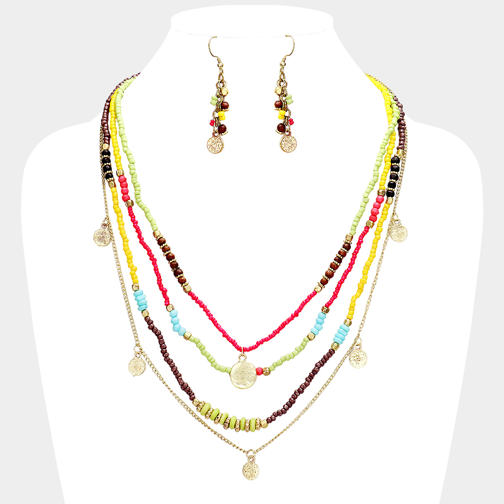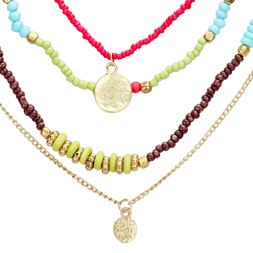 Multi Bead Round Metal Layered Necklace