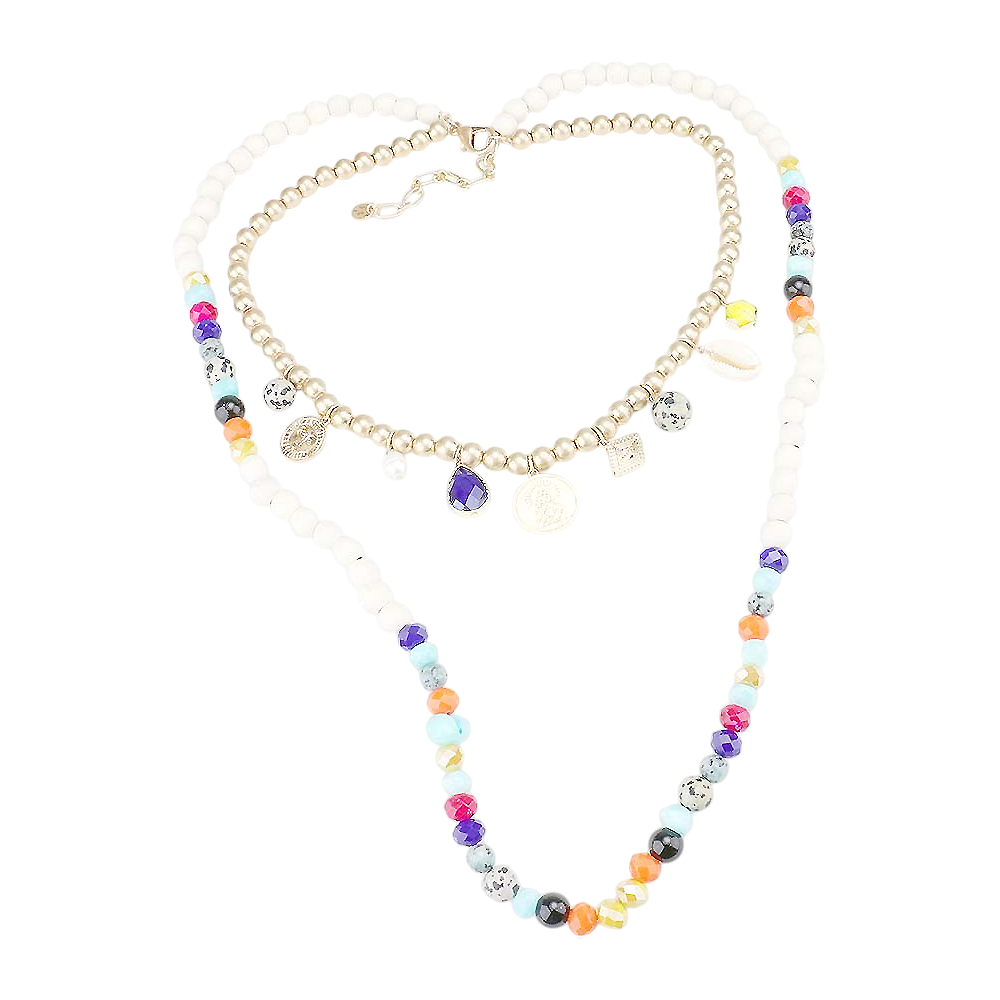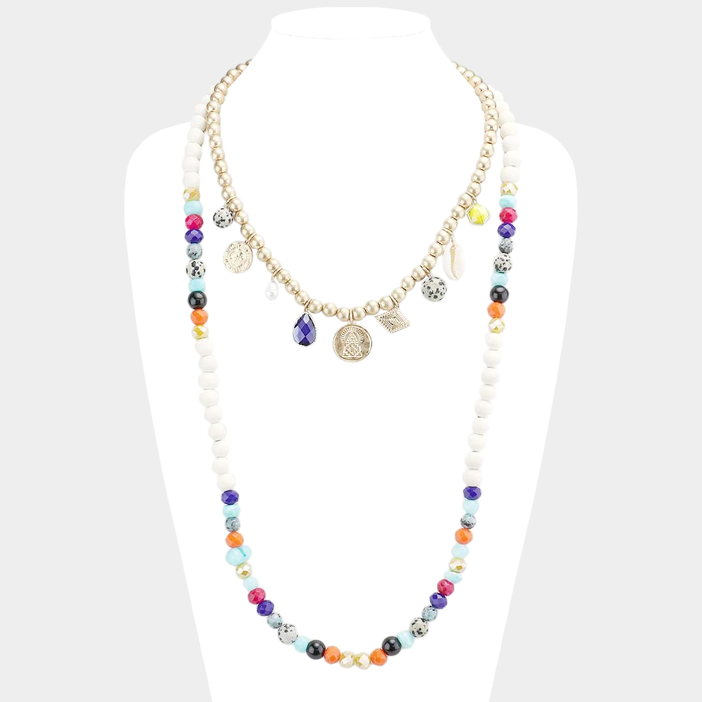 Bold Geometric Resin Wooden Beaded Statement Necklace