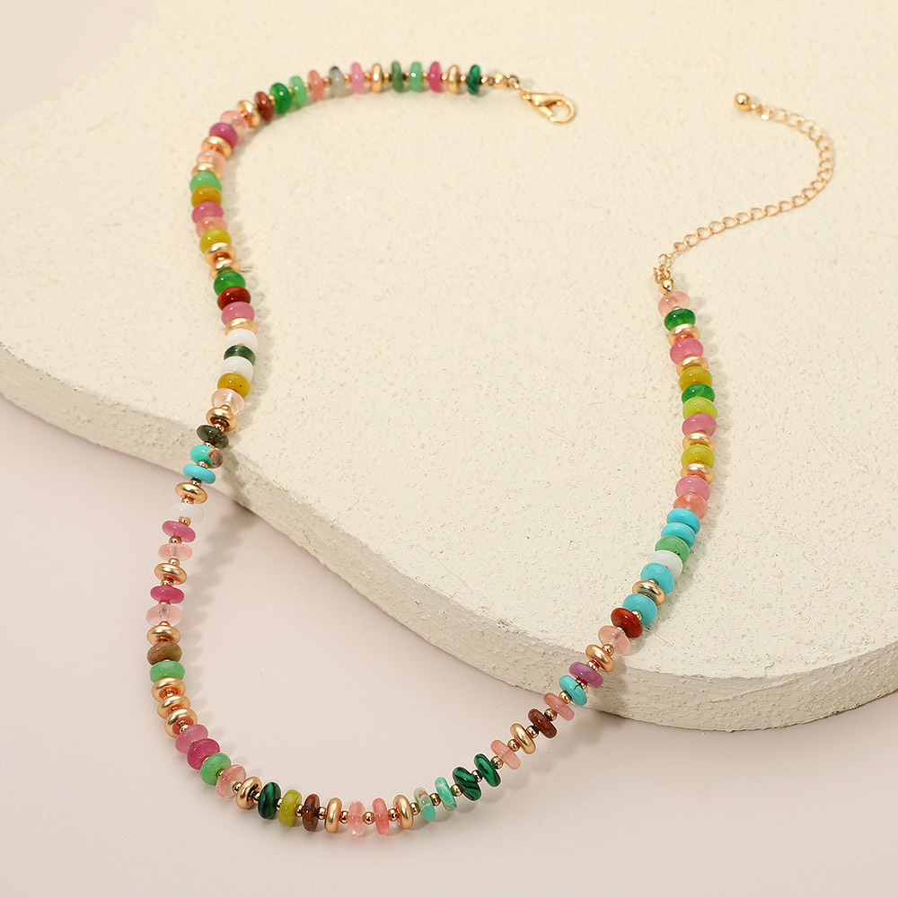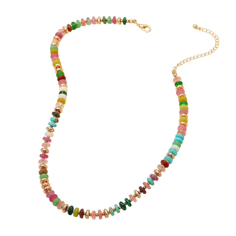 Details • Necklace Size : 16" + 3" L • Decor Size : 0.25" L • Playful multi beaded necklace featuring colorful round beads arranged in a vibrant pattern. Lightweight with an adjustable chain for a perfect fit, this necklace adds a fun pop of style to casual and chic outfits. A versatile jewelry piece ideal for layering or wearing solo. • Lead and Nickel Compliant