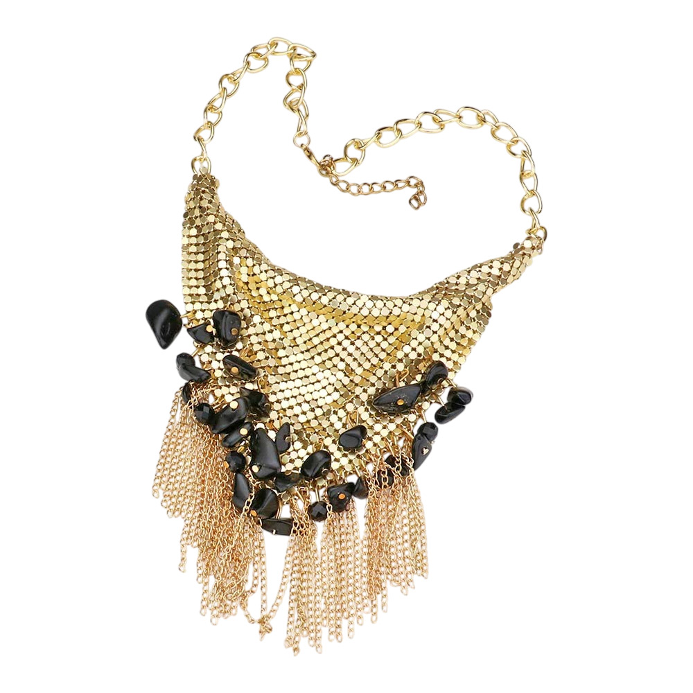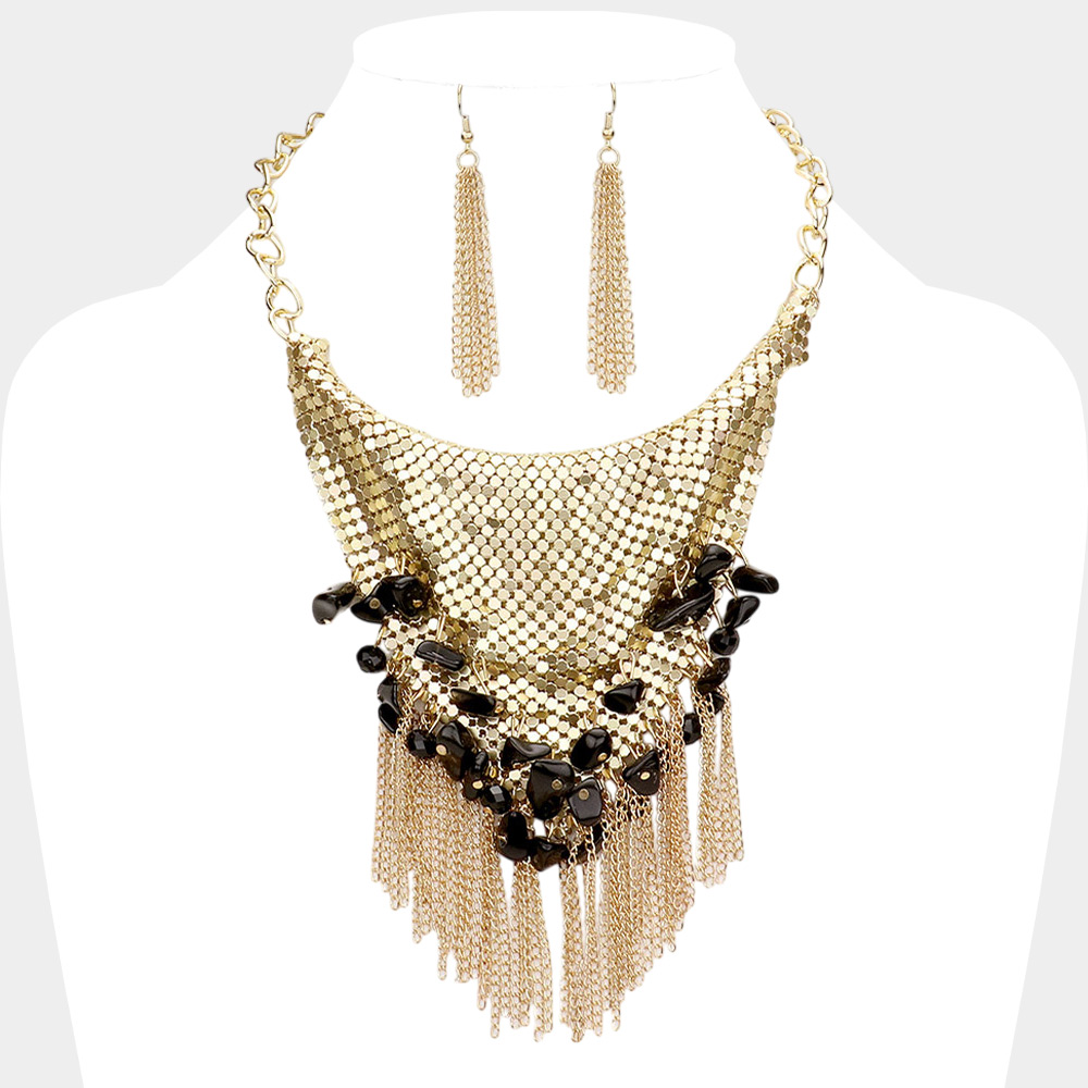 Natural Stone Cluster Metal Chain Fringe Necklace