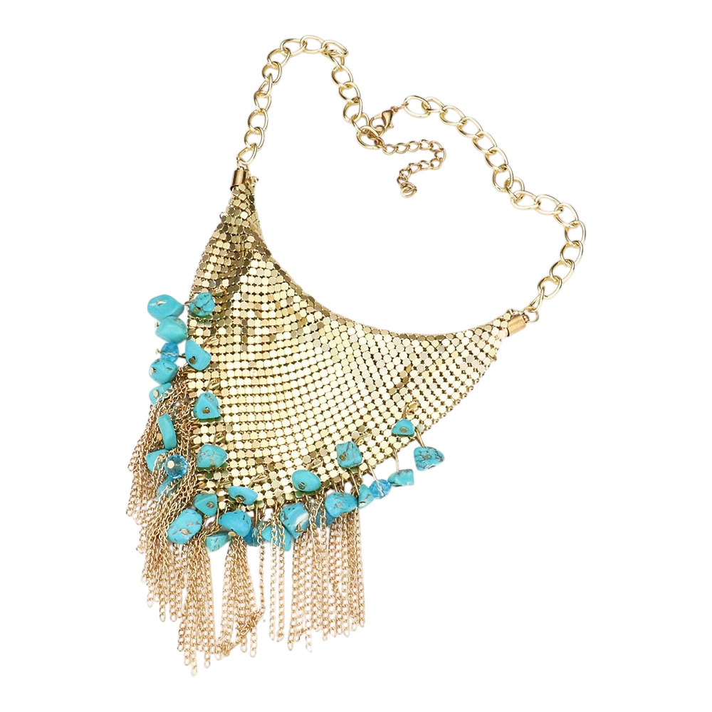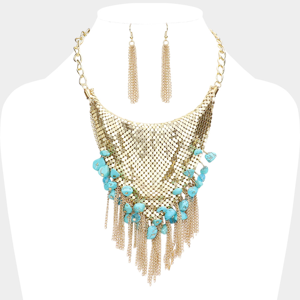 Natural Stone Cluster Metal Chain Fringe Necklace