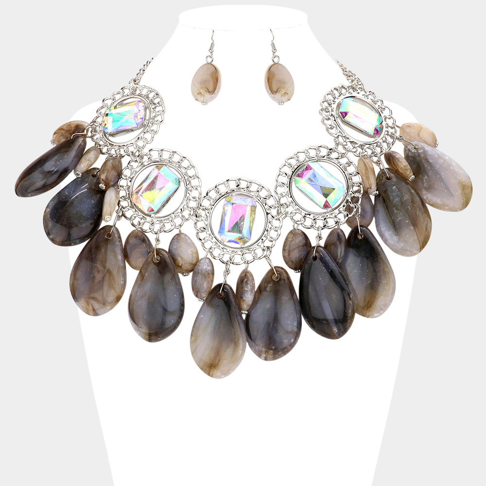 Faceted Rectangle Beaded Tassel Dangle Earrings
