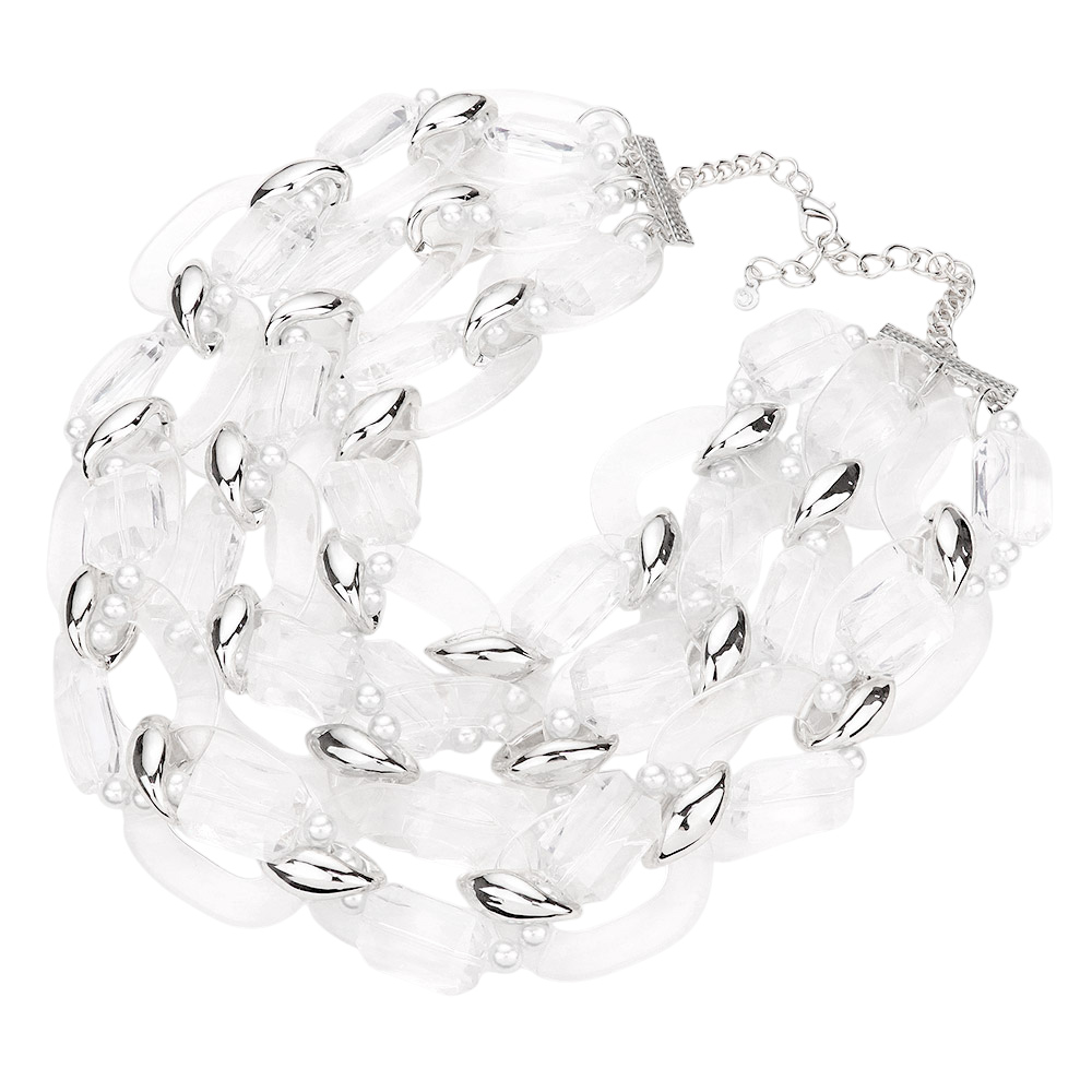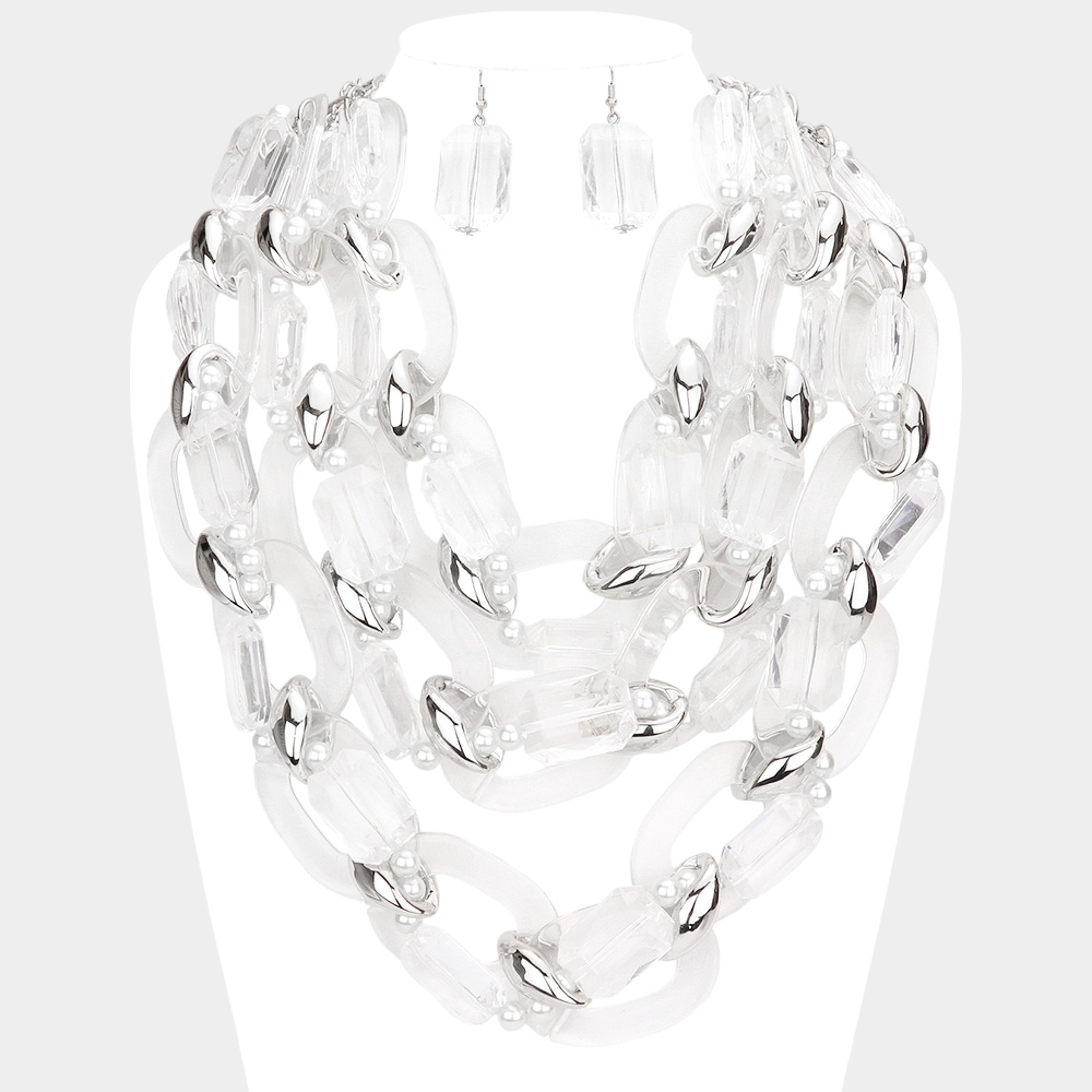 Pearl Chunky Lucite Cord Braided Statement Necklace