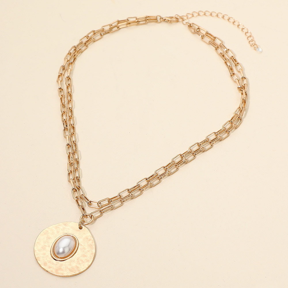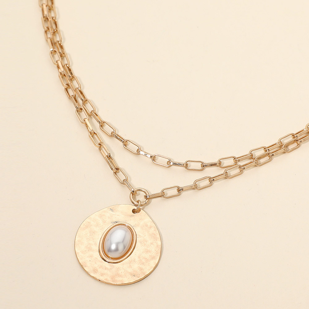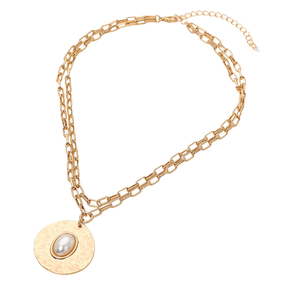 Oval Pearl Center Hammered Disc Pendant Layered Necklace Oval Pearl Center Hammered Disc Pendant Layered Necklace Oval Pearl Center Hammered Disc Pendant Layered Necklace